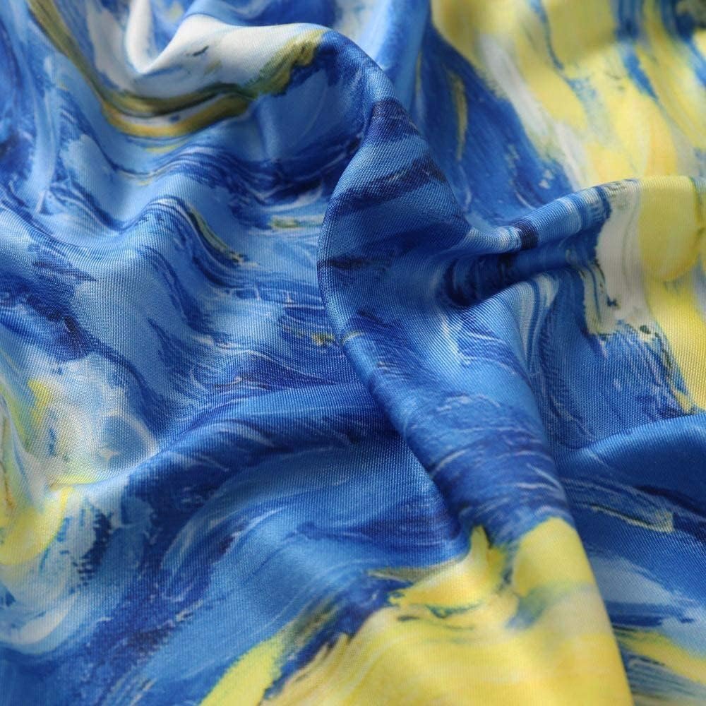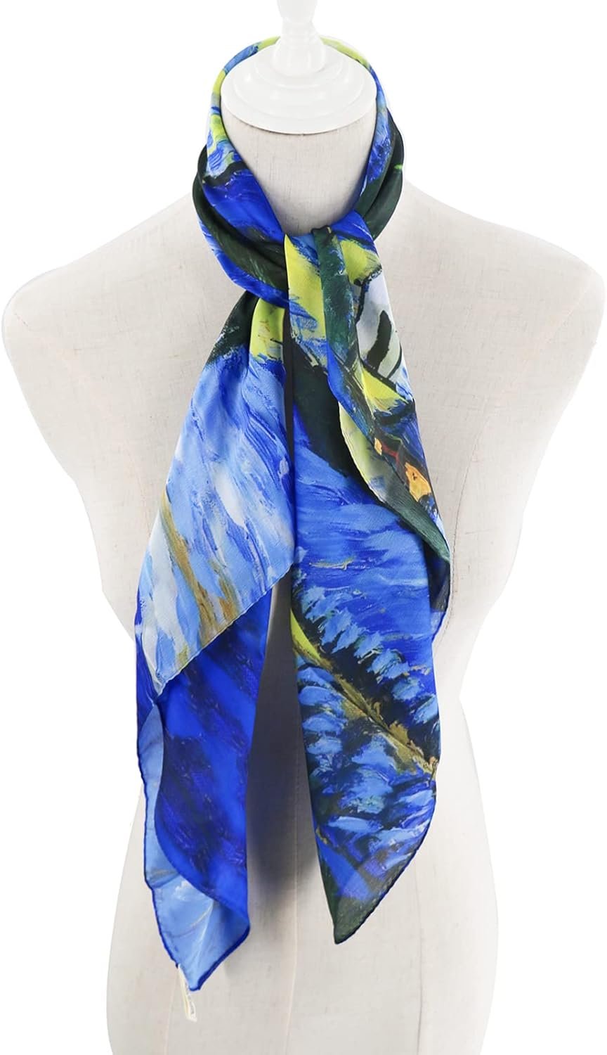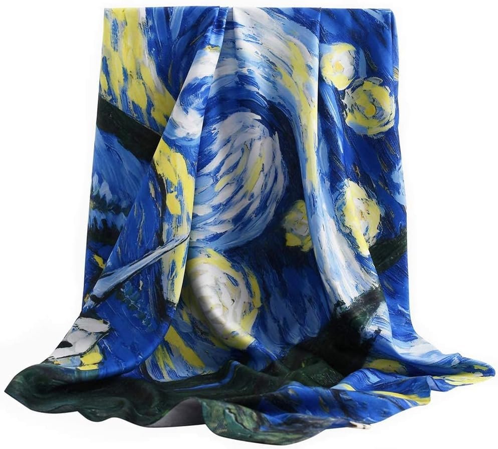 Customers find the scarf beautiful, with one mentioning its Van Gogh print, and appreciate its vibrant colors that shift as it’s worn. Moreover, the scarf is well-made, soft, and large enough to wrap around hair, making it perfect for protecting relaxed hair. Customers consider it good value for money. However, the silk content receives mixed reviews, with some confirming it’s genuine while others say it’s not real silk.