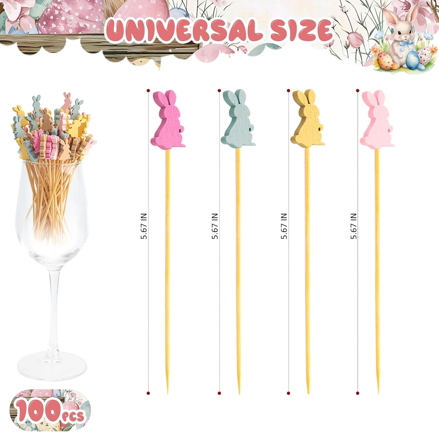 【Generous Package】 Includes 100 Easter-themed bamboo toothpicks, each 4.7 inches long. Perfect for appetizers and party decorations.