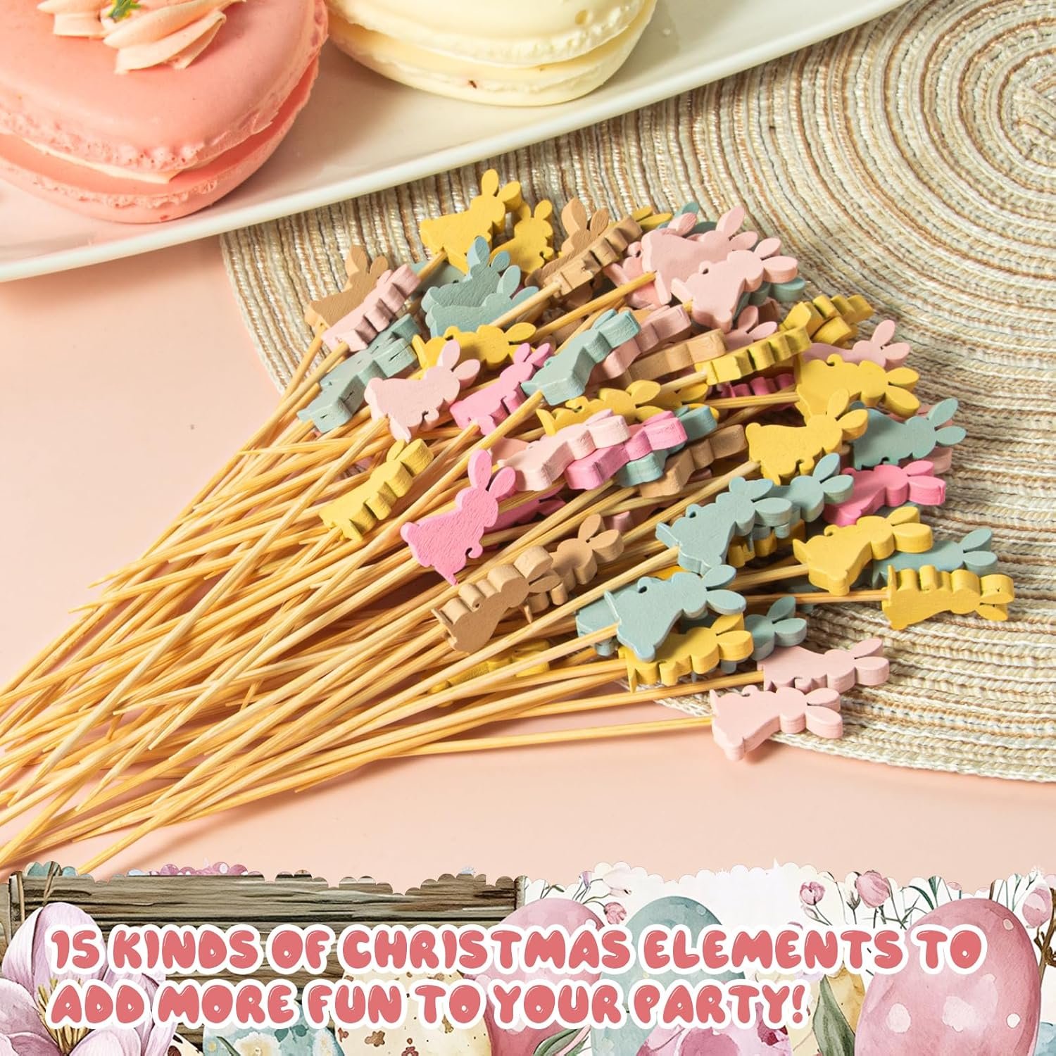 Featuring vibrant Easter-themed shapes, including bunnies, bunny heads, and colorful eggs, these picks make your food more eye-catching and festive, creating an unforgettable party atmosphere.