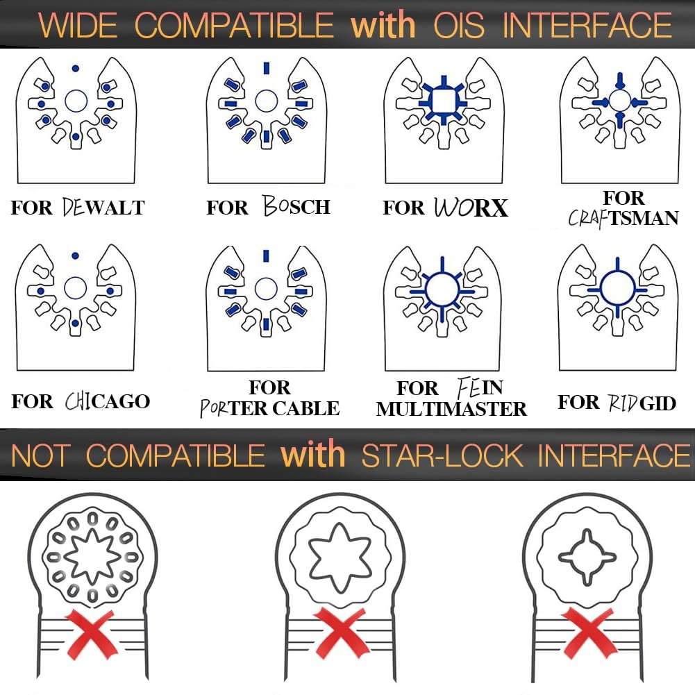 More Compatible: The universal OIS interface system for over 95% of oscillating tools, for Ryobi Milwaukee Dewalt oscillating tool and so on. Do not compatible with starlock interface system