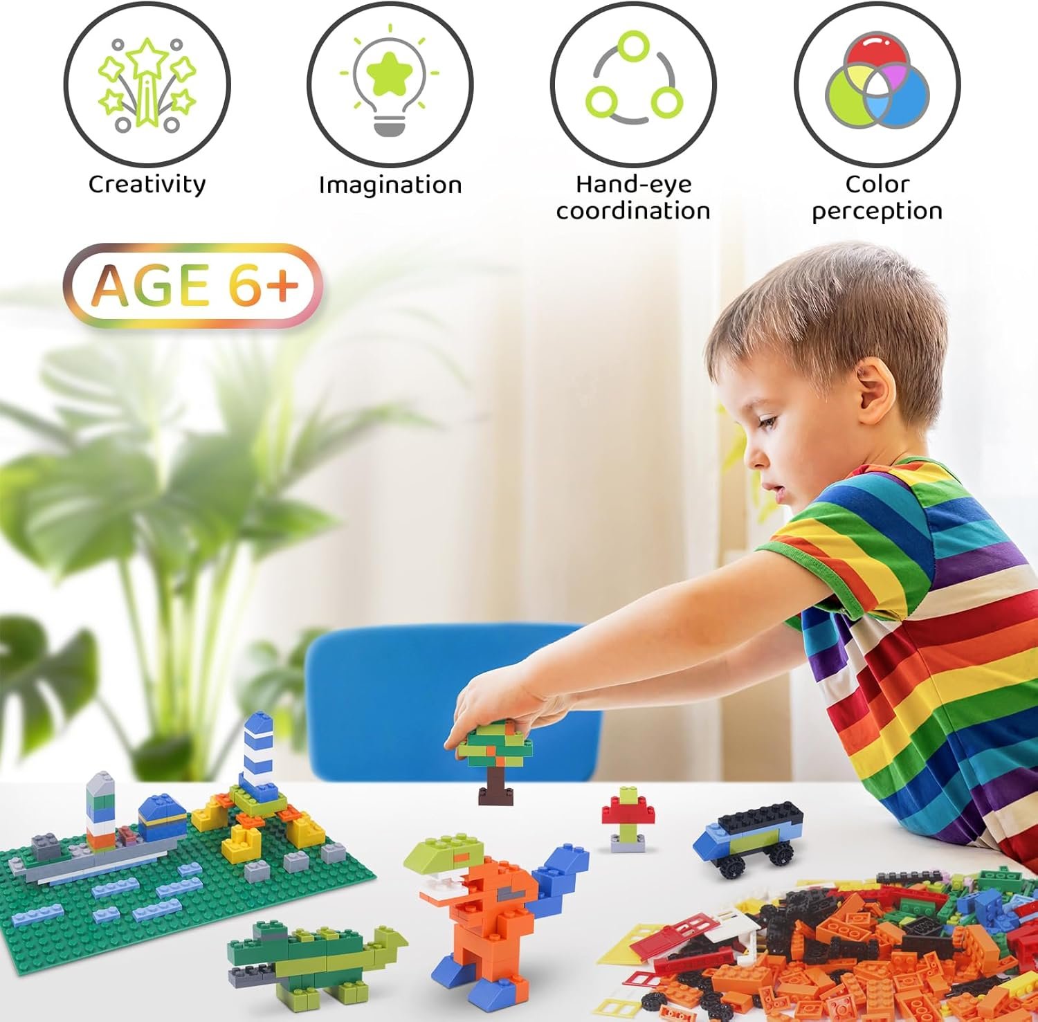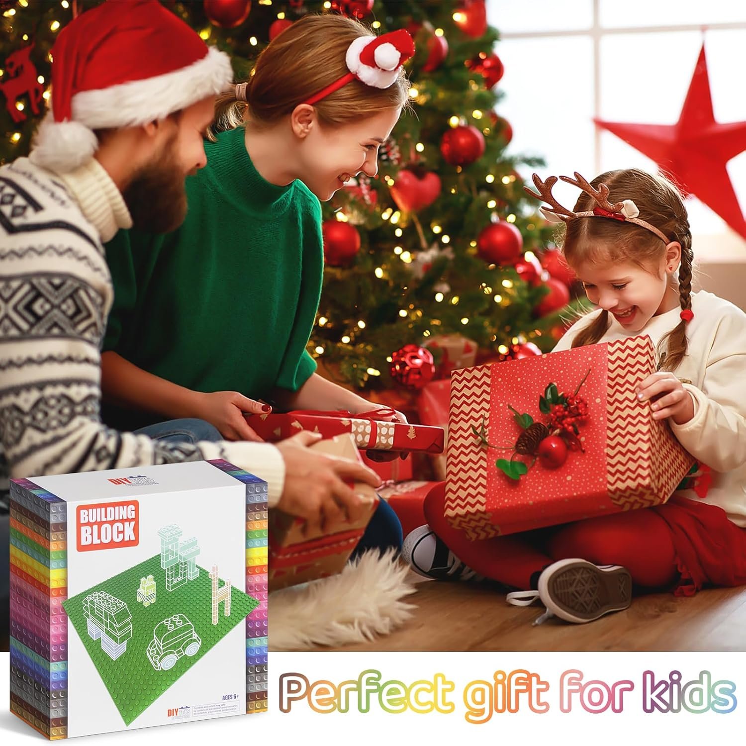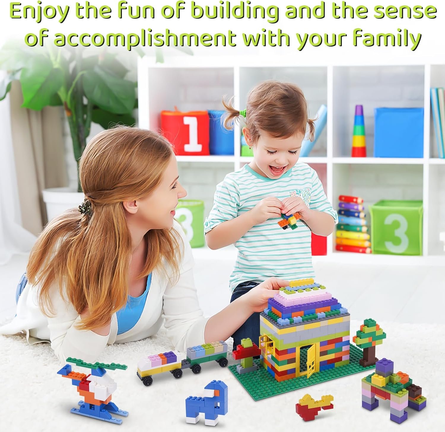 Abundant Building Components – Delight in a comprehensive kit featuring 1100 standard classic building bricks, which has vibrant beautiful colors and various shapes, complemented by dual 16×32 green-grey baseplates for enhanced construction play. Additionally, our set comes with a creative building guide tailored for young minds
