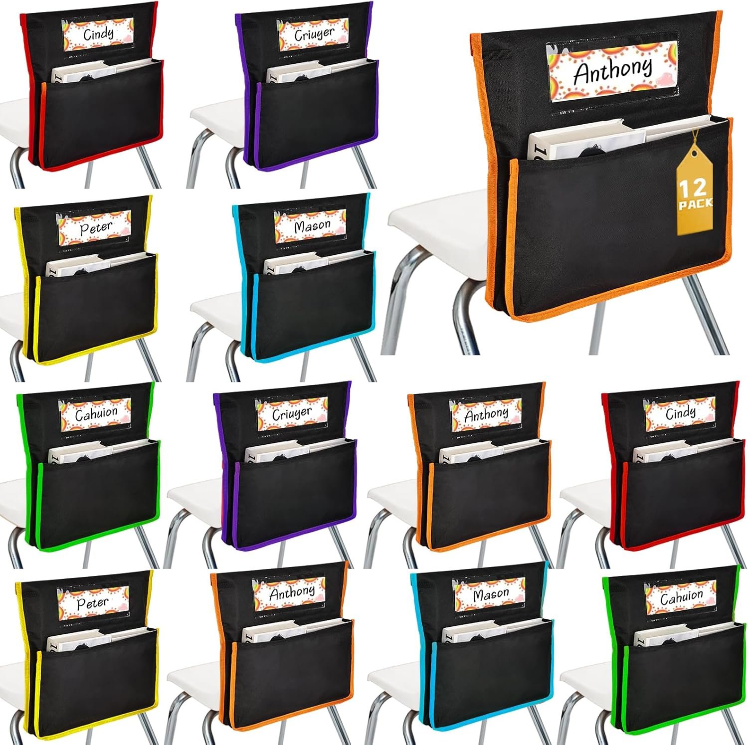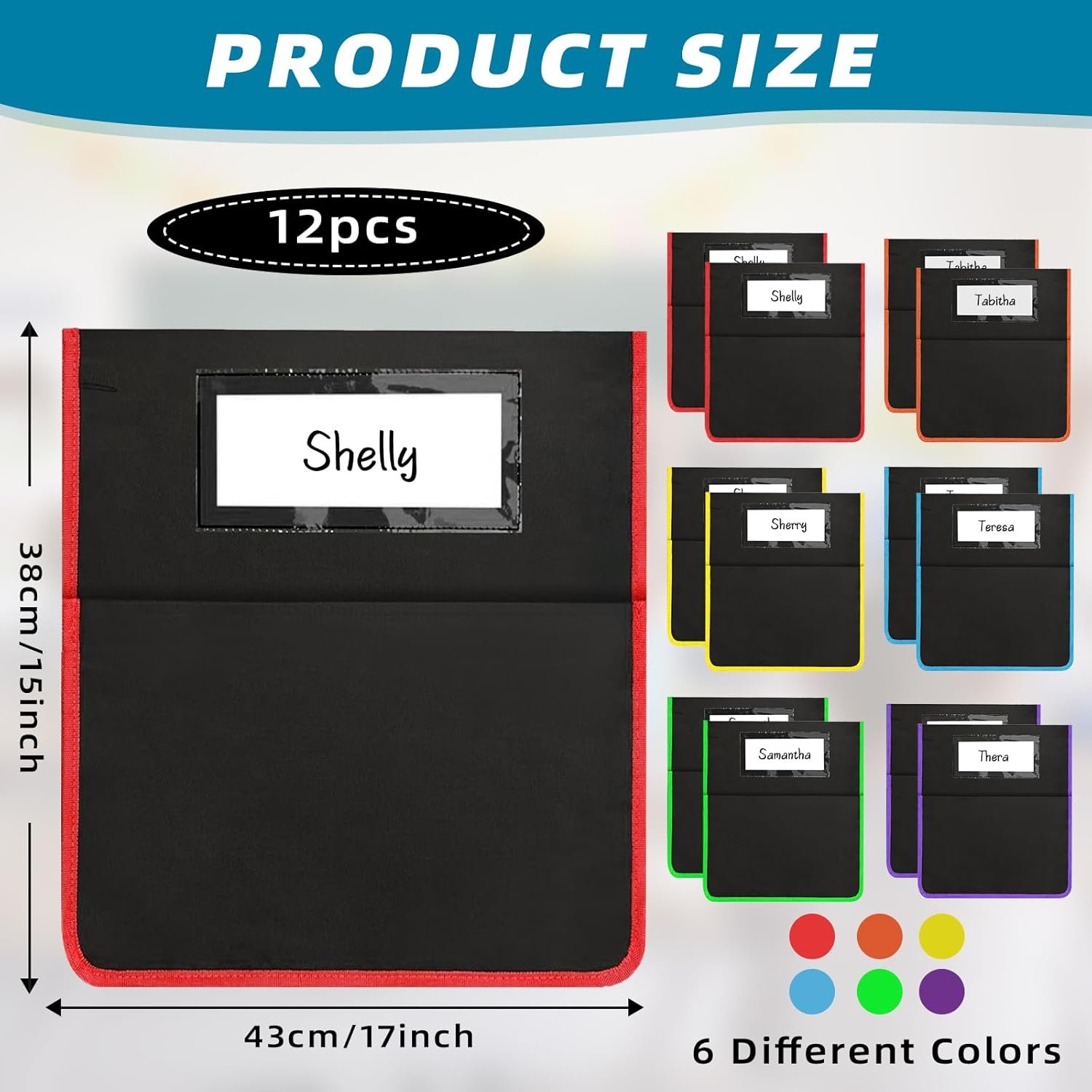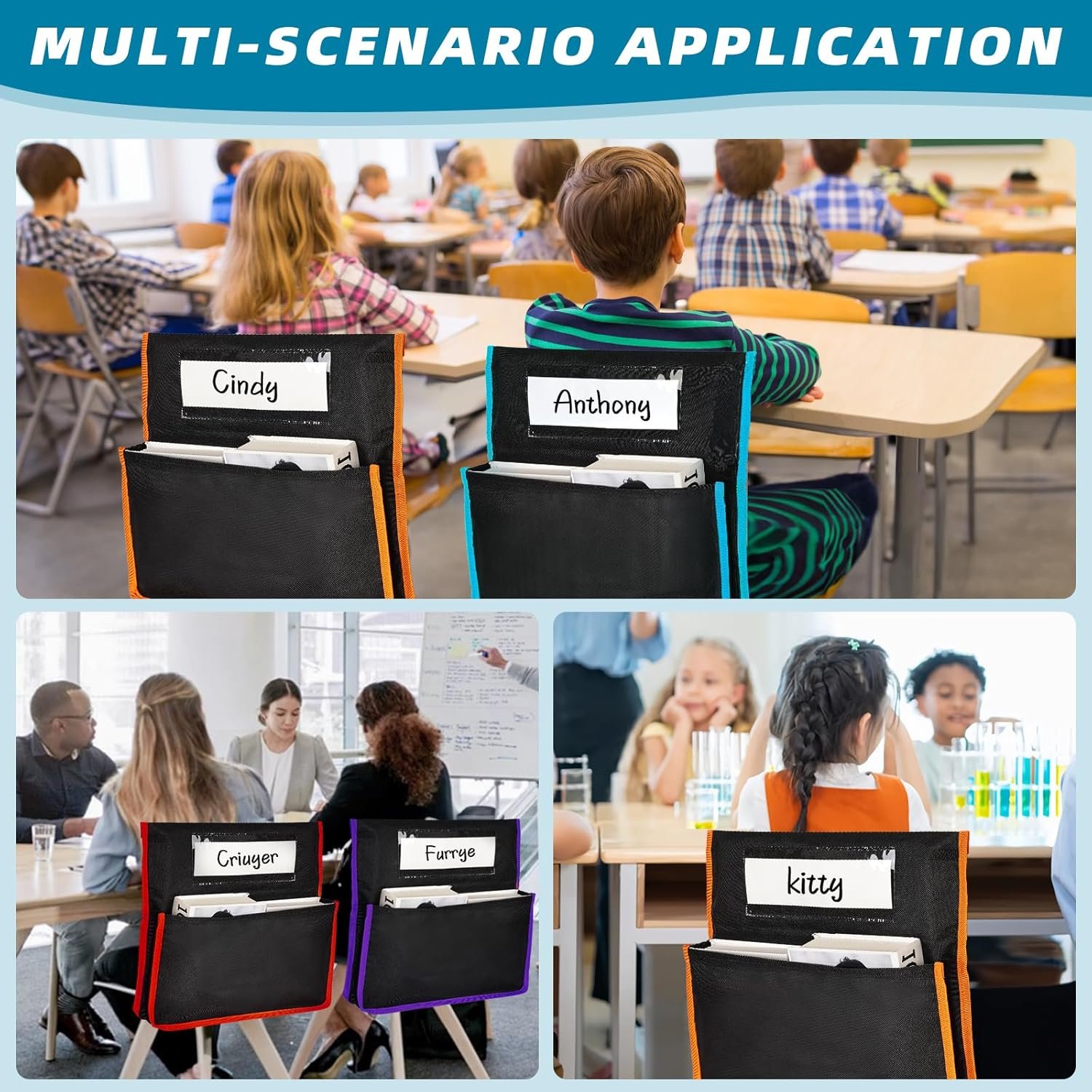 【Complete Set】 The set includes 12 chair pockets and 12 blank name tag cards in six vibrant colors, providing an organized and efficient learning environment. Name tags help students quickly identify their pockets for better organization.
