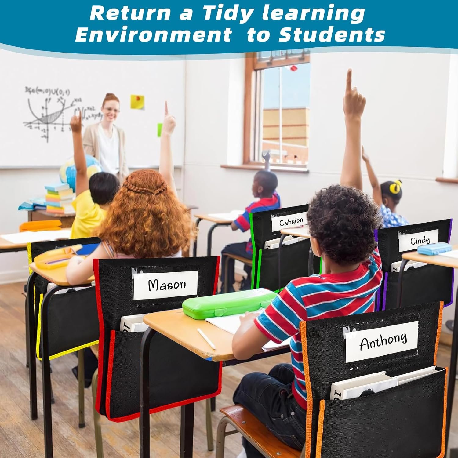 【Durable Construction】 Crafted from high-quality, tear-resistant materials, these chair pockets are built to withstand the rigors of daily use. They remain intact and functional, even when subjected to the wear and tear of busy classroom environments, promising long-lasting use and reliability.