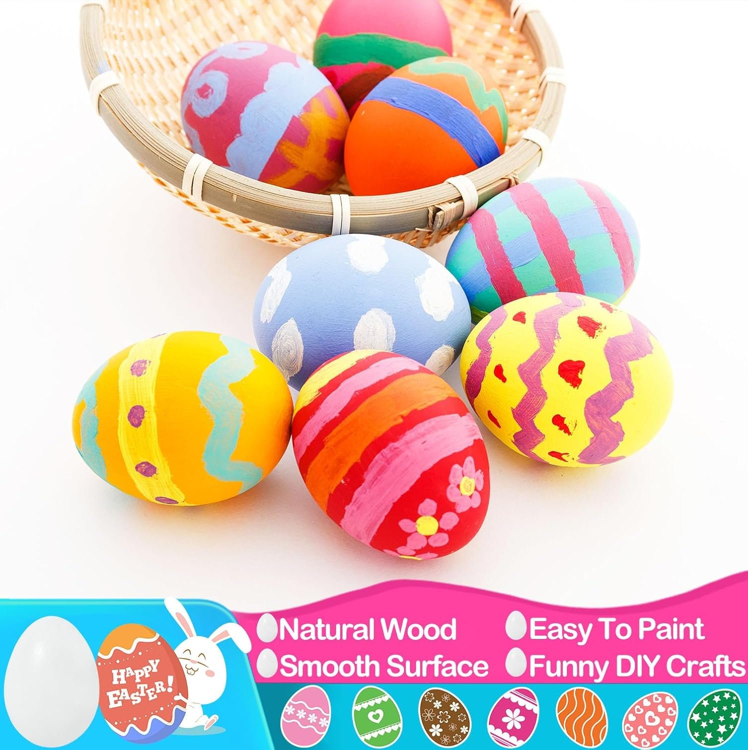 Wide Applications: Our white wooden eggs perfect for Easter theme decoration, Easter egg hunt events, school classroom supply, Easter party favor supplies, Easter basket stuffers, DIY graffiti, Easter eggs, can be put into the chicken coop to promote hens to lay eggs, make props, etc.