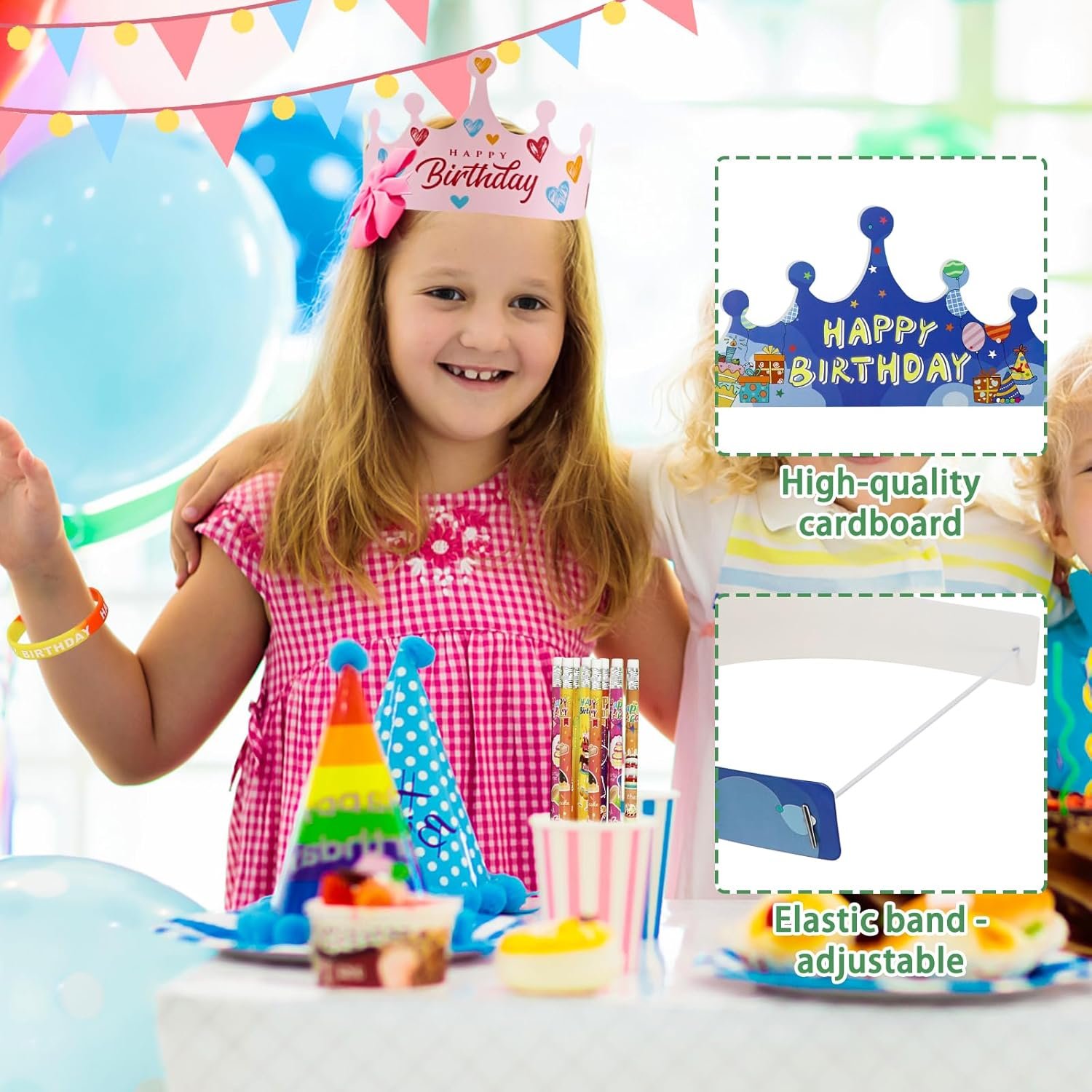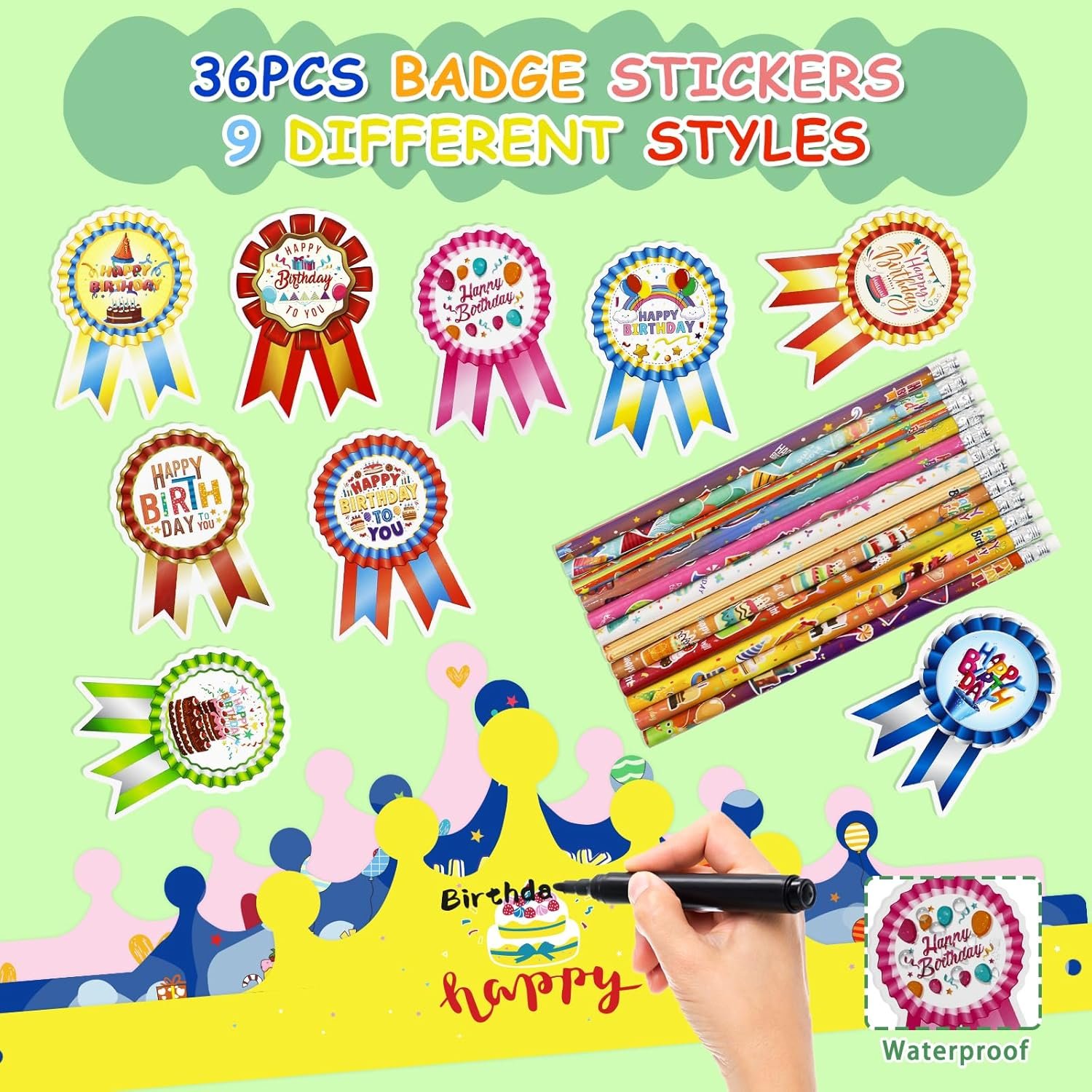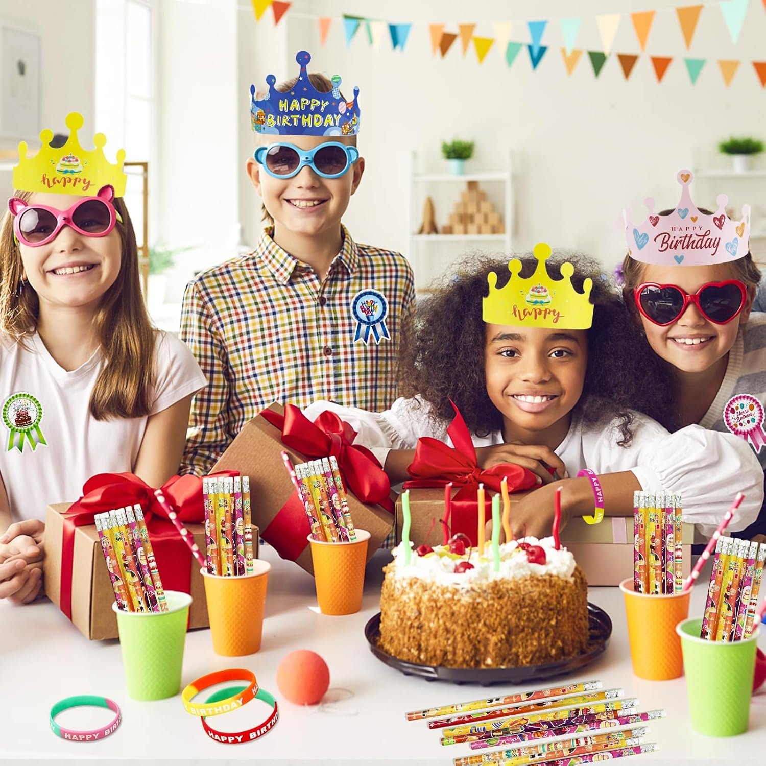 Easy to Use: The birthday crown can be adjusted to the size you need, is easy to operate, suitable for children and adults, and there is enough space for you to write the student’s name, the birthday rubber bracelet is easy to wear, colorful, birthday pencils and birthday badge stickers are easy to operate, and are perfect birthday decorations for the party, so that every participant can remember this special day