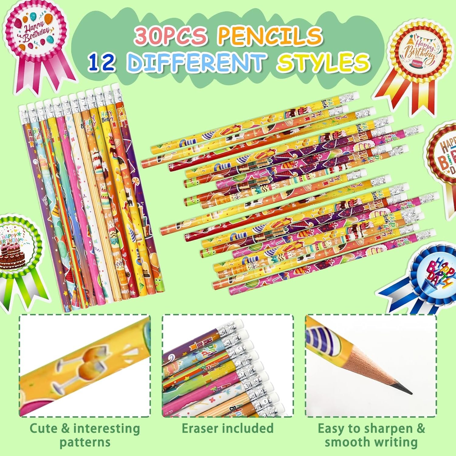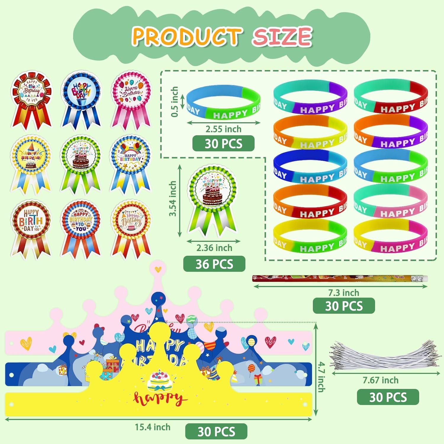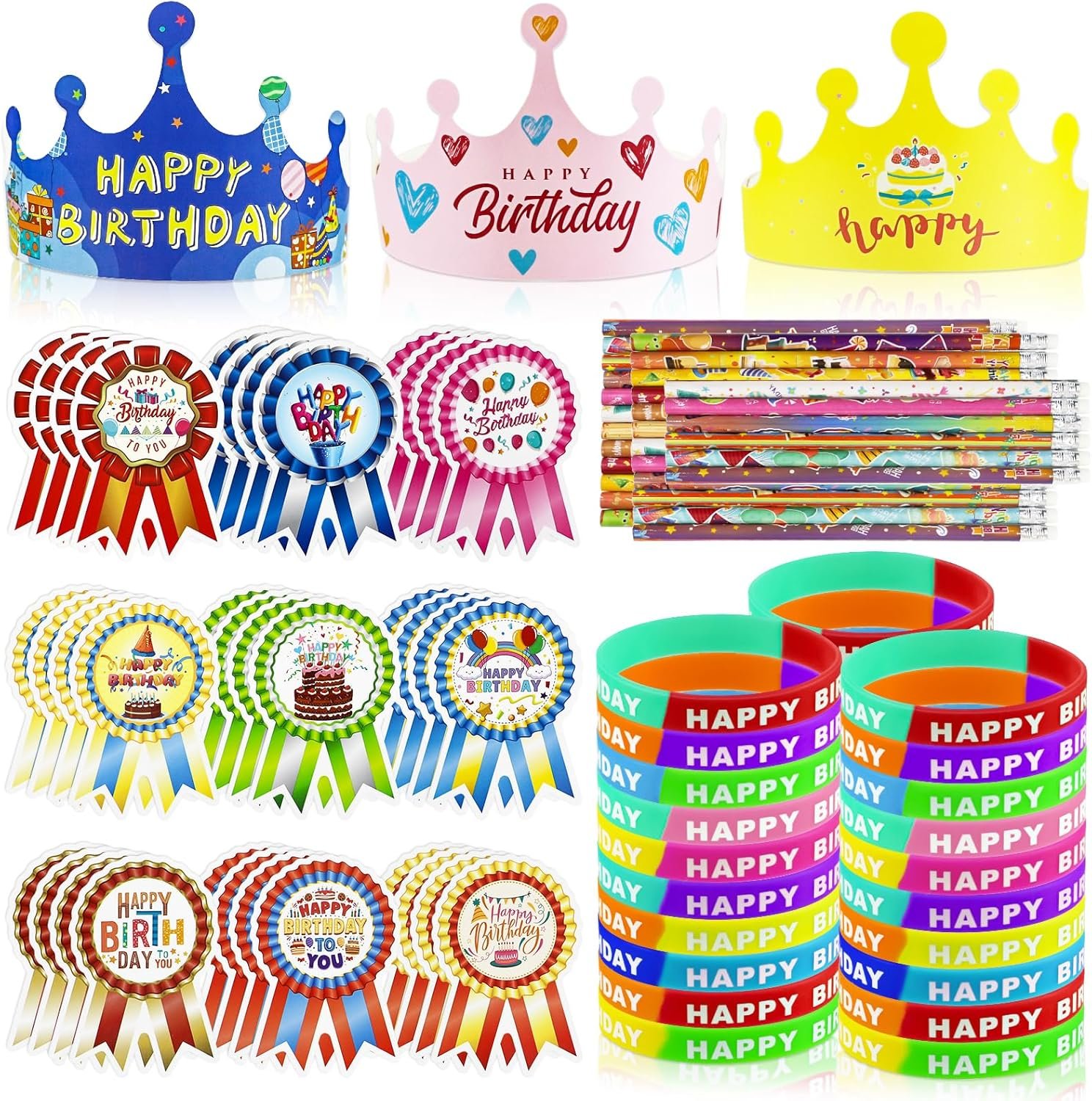 Happy Birthday Party Set: You will get 126 PCS for your Happy Birthday Kits, including 30 PCS birthday hats with 3 different styles, 30 PCS birthday bracelets with 10 different styles, 36 PCS badge stickers with 9 different styles, and 30 PCS happy birthday pencils with 12 different styles, which fully meet your needs