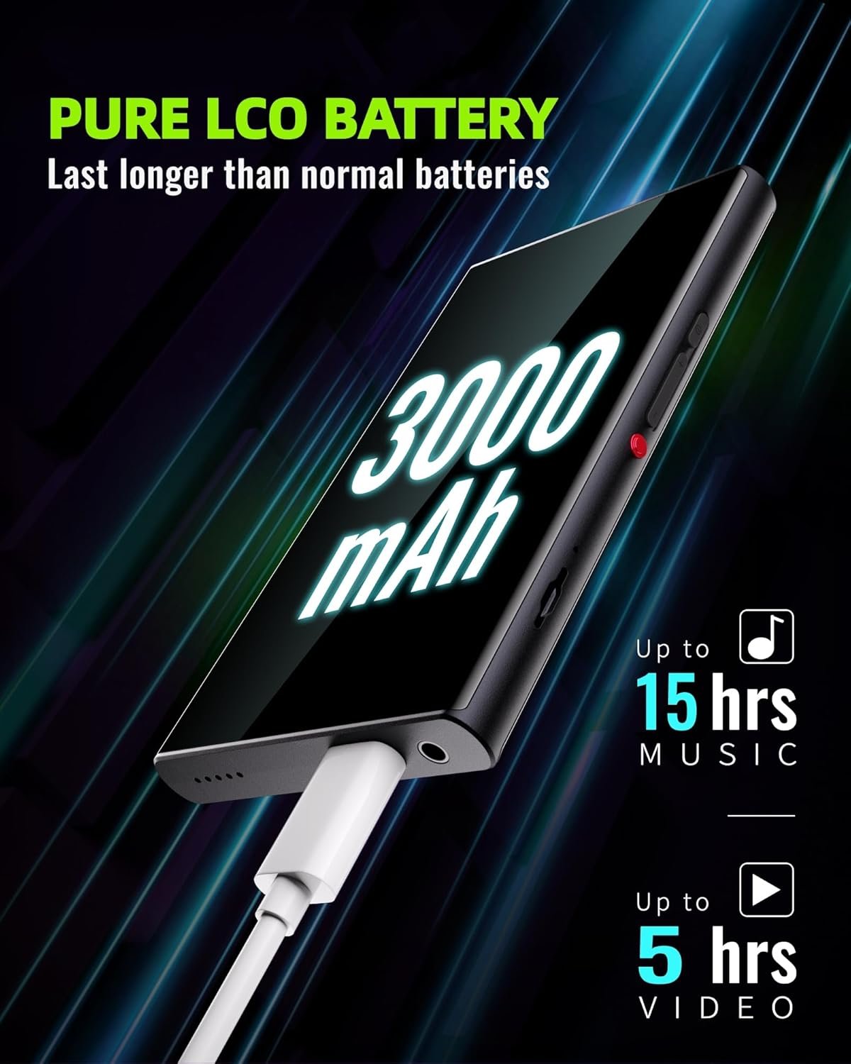 ◎Screen-off state: play local music for about 12 hours;play online music for about 8 hours.