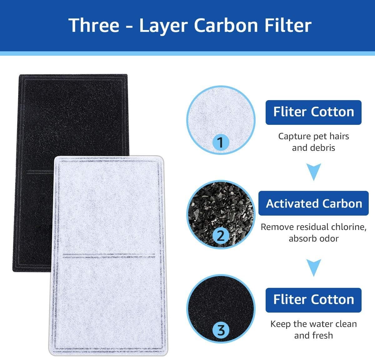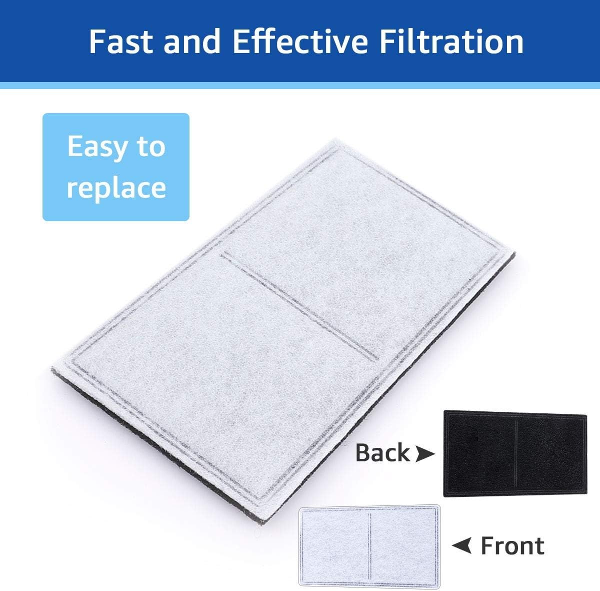 EFFECTIVE PURIFYING – Compatible with petsafe drinkwell replacement carbon filters with 3-layer filter structure helps capture hair, debris and remove unpleasent odor from the water. You could believe our pet fountain filter replacement can keep water in your pet drinker bowl fresh and clean, protecting both your fur babies and pet fountains