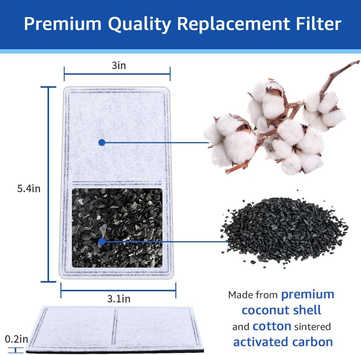 PREMIUM QUALITY – 12 pack compatible with petsafe water fountain filters are made of high concentrations of cotton filters and quality activated carbon, more effective filtration and longer-lasting for using
