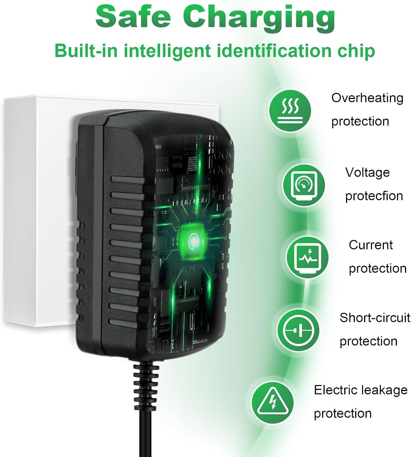 【Safe and Reliable】: 12v Charger is certified by safety testing with advanced protection mechanisms against overvoltage, overcurrent, short-circuit, and overheating, ensuring that your child’s 12V electric scooter or ride-on toy is safe and reliable.
