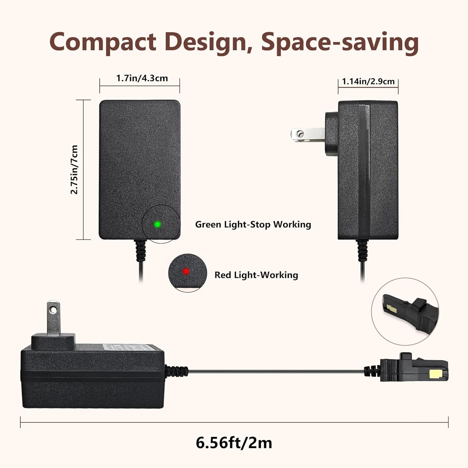 Superior Build Quality: Crafted with premium-quality, durable materials, this 12v charger features thick, wear-resistant wires designed for long-term use and reliable performance. The cable length is 2 meters (6.56 feet), the longest in its class, providing extra convenience and flexibility for charging your power wheels battery