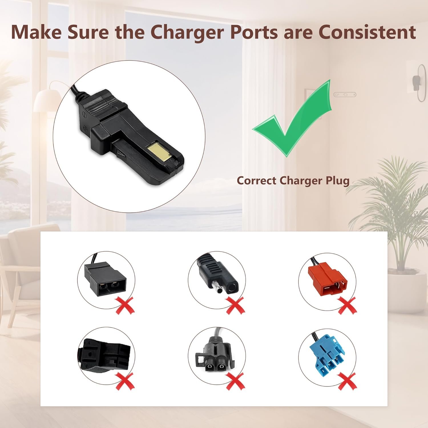 Friendly reminder: Before buying, be sure to confirm the 12v power wheels battery compatibility and connector type! ! ! Before buying this charger, make sure the battery is not damaged. If the electric vehicle is not used for 2-6 months, the battery in a low voltage state for a long time may be damaged and cannot be used normally