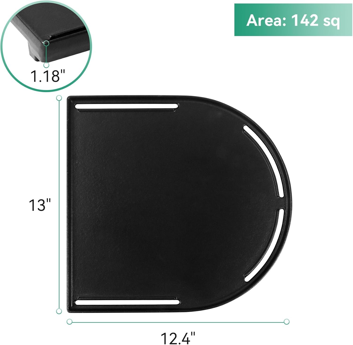 【Dimension】13″ × 12.4″ × 1.18″. 【Cooking Area】- 142 Square inch. 【Package】- 1x Griddle Grill pan; 【Material】- Heavy duty cast iron for coleman roadtrip x-cursion griddle, coleman roadtrip 285 griddle