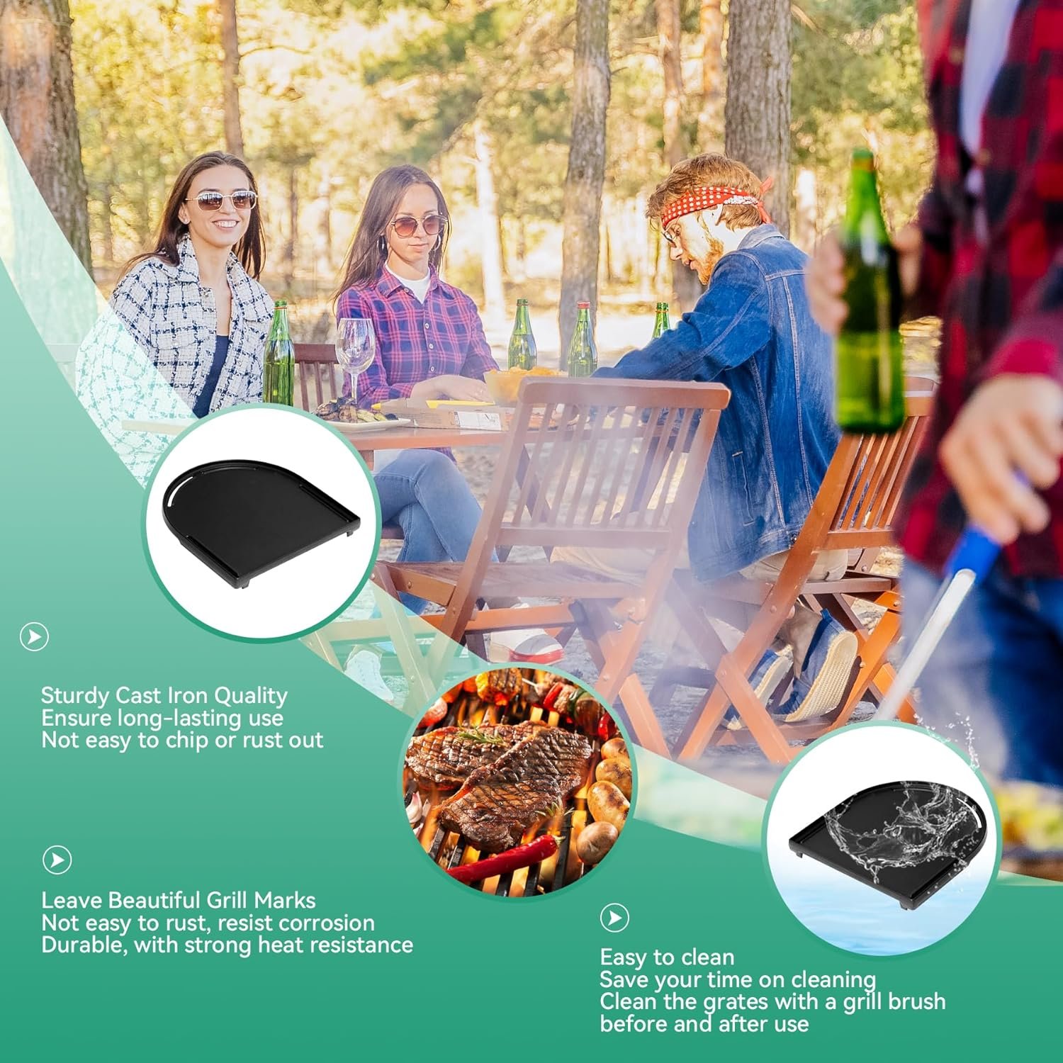 【Decent Quality】Heavy-duty construction and substantial, effectively resisting rust or warping, Sturdy enough to support the high temperatures over time and spreads heat more evenly, Creates nice sear marks and flavor of your food. A must-have for your BBQ party