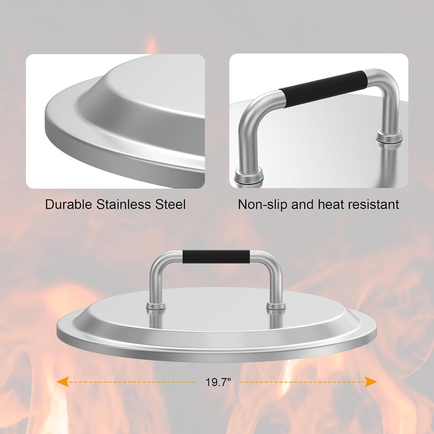 【Friendly Design】The fire pit lid features a handle for added convenience and safety. Easy to open, close and transport the fire pit to prevent the risk of burning your hands. In addition, the lid is designed with safe edges and no sharp edges to ensure a safe outdoor cooking experience.