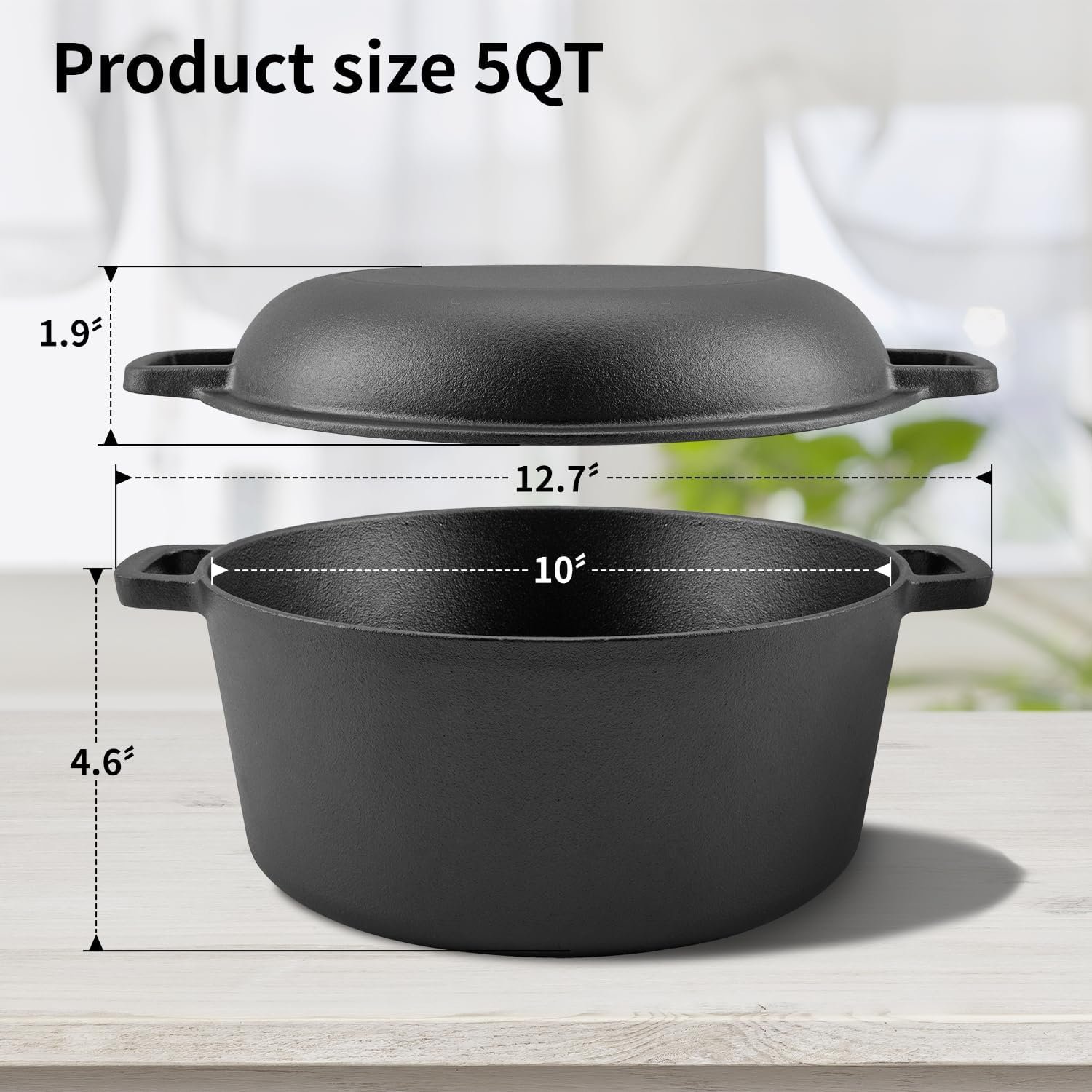 【2-in-1 Pre-Seasoned Dutch Oven】The dutch oven pot with lid comes pre-seasoned with vegetable oil. This oven capacity is 5 QT, and the lid can be converted into a skillet. It is perfect for sourdough bread baking.