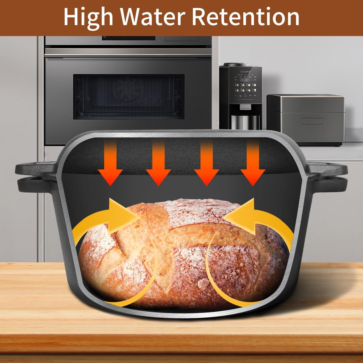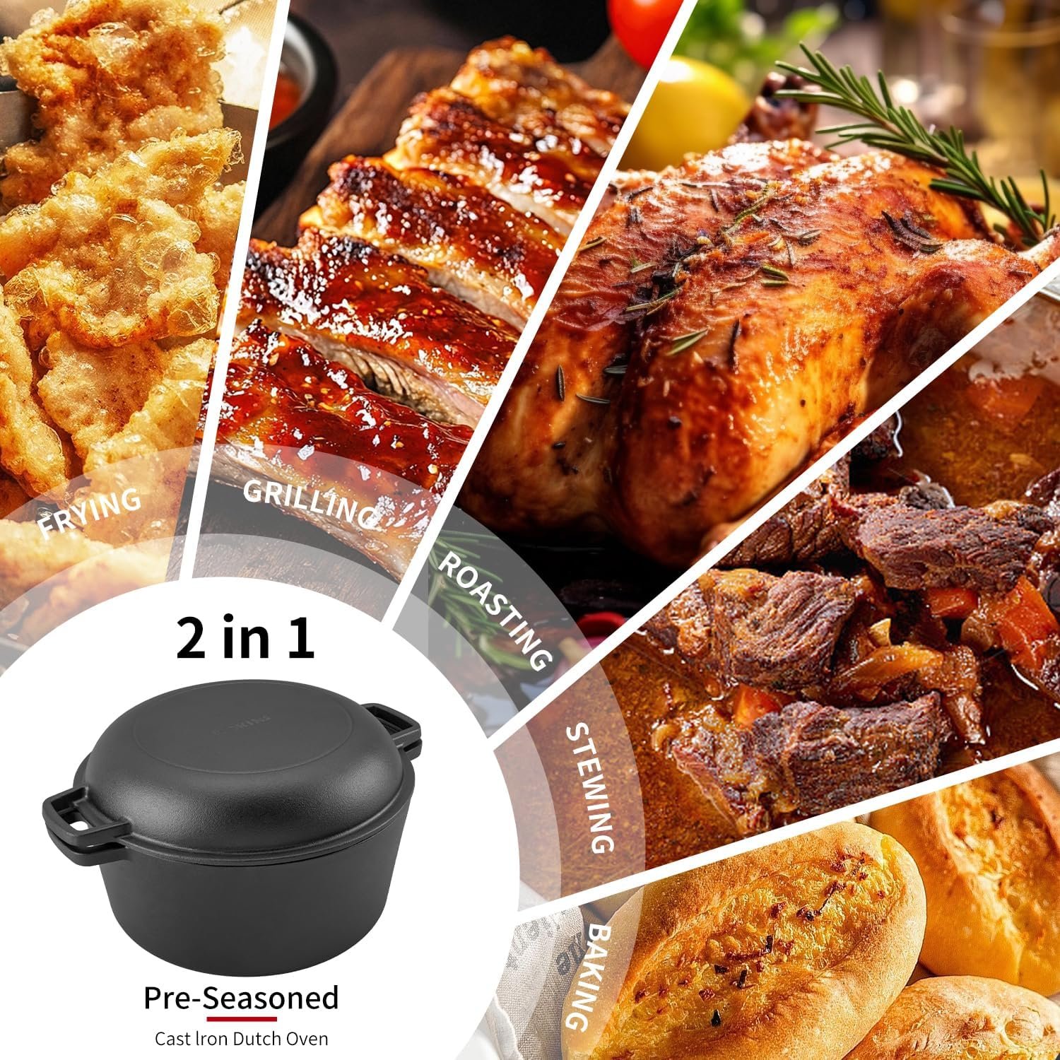 【With masterful casting techniques】Every piece of our multi-functional pre-seasoned cast iron dutch oven is formed from processed cast iron. It boasts exceptional heat conductivity and retention,withstanding years of culinary use.
