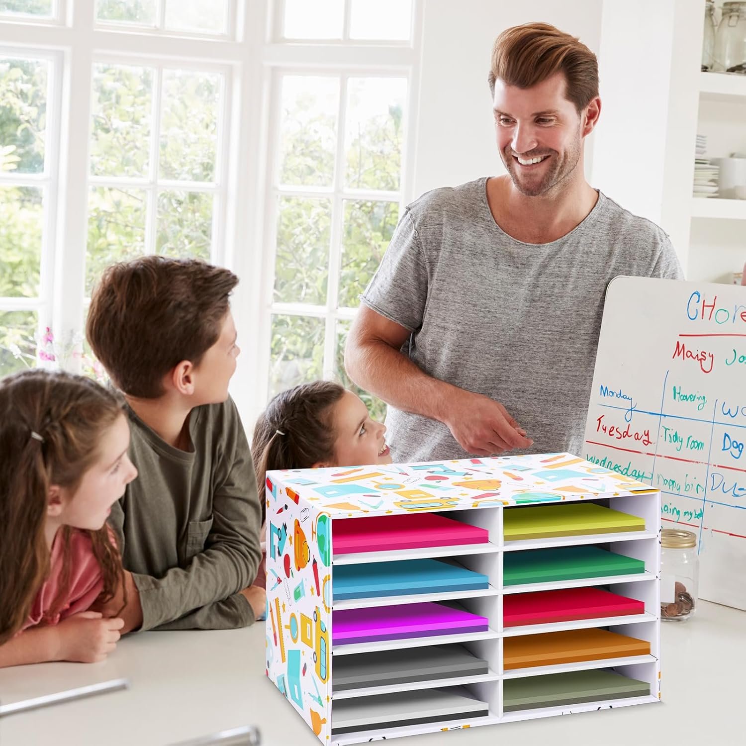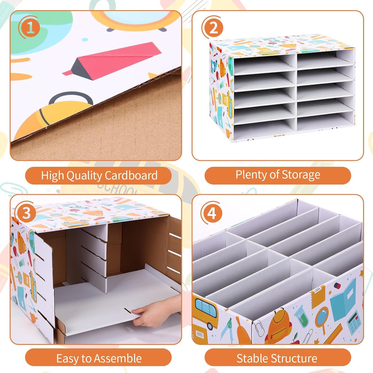 These classroom organizers are made of strong corrugated paper material, which is reliable, strong and durable, and can serve you for a long time. These corrugated boards are lightweight and reusable.