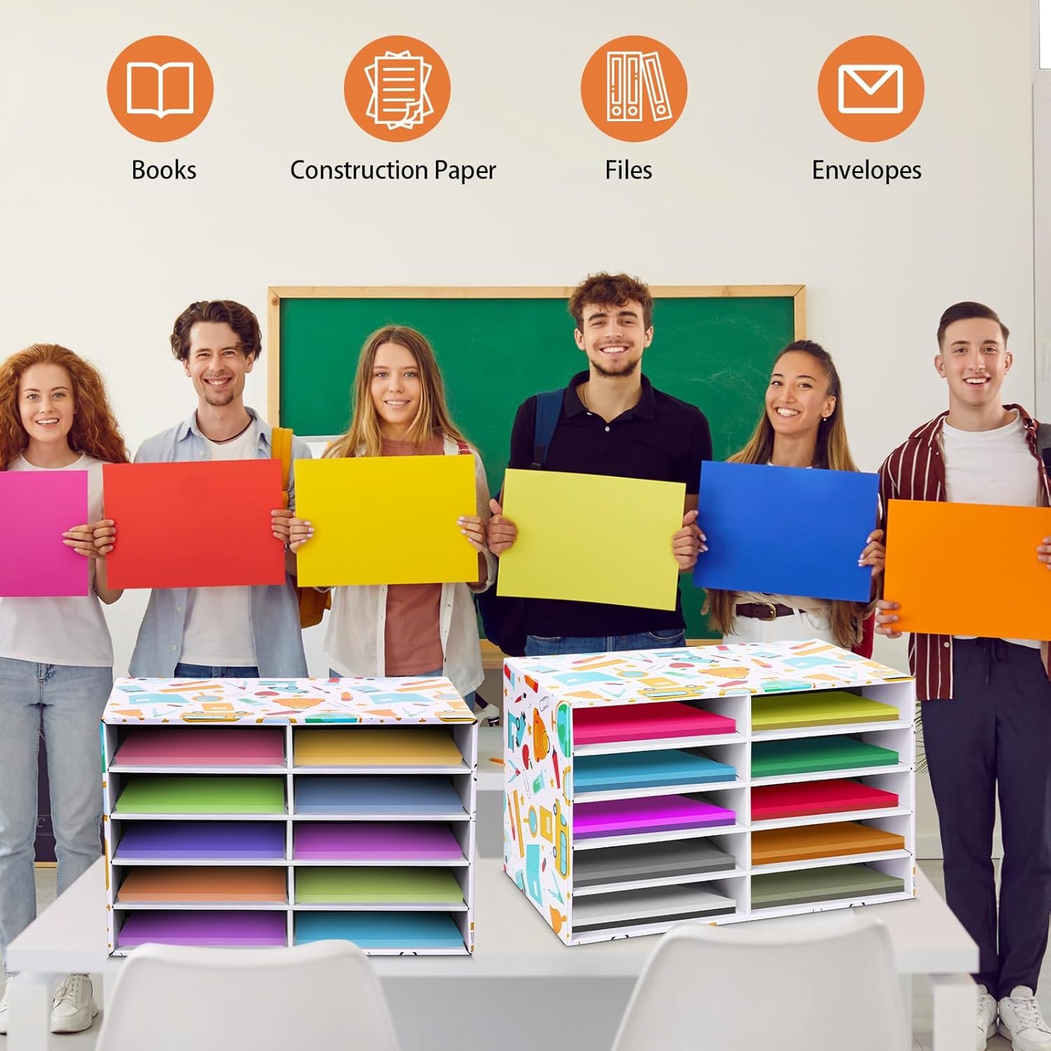 Package Included: you will receive 2 paper storage organizers that can easily store, protect and organize your paper to keep it in order; The classroom mailbox is designed with cute stationery patterns and a bright style that can be a bright decoration in the classroom