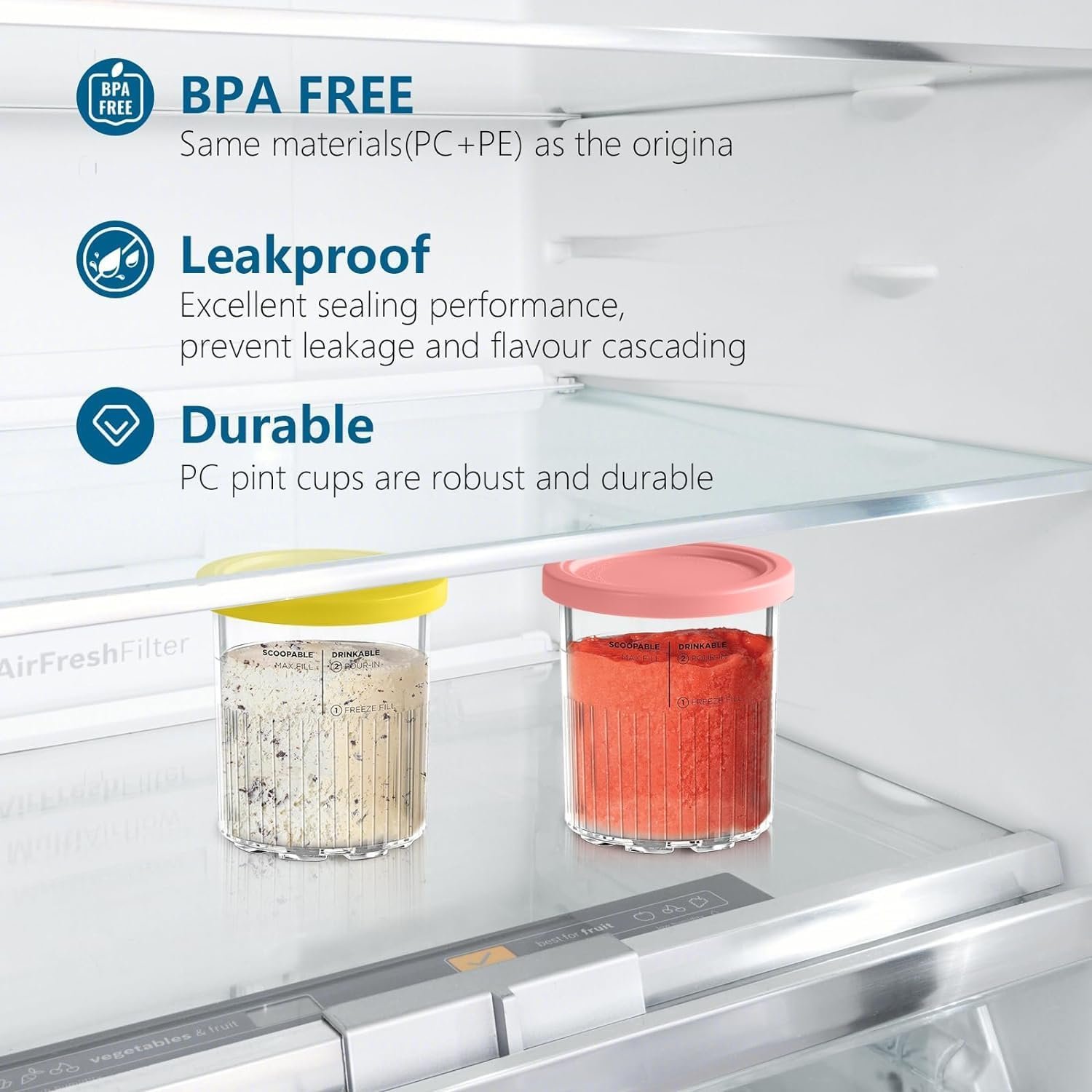 🍨[Tight-Seal Lids]: Say goodbye to leaks and spills with our tightly sealed lids. They effectively keep your ice cream containers secure, while also providing insulation against freezer odors. This ensures that your ice cream, yogurt, sorbet, or any other frozen treats stay perfectly flavorful.