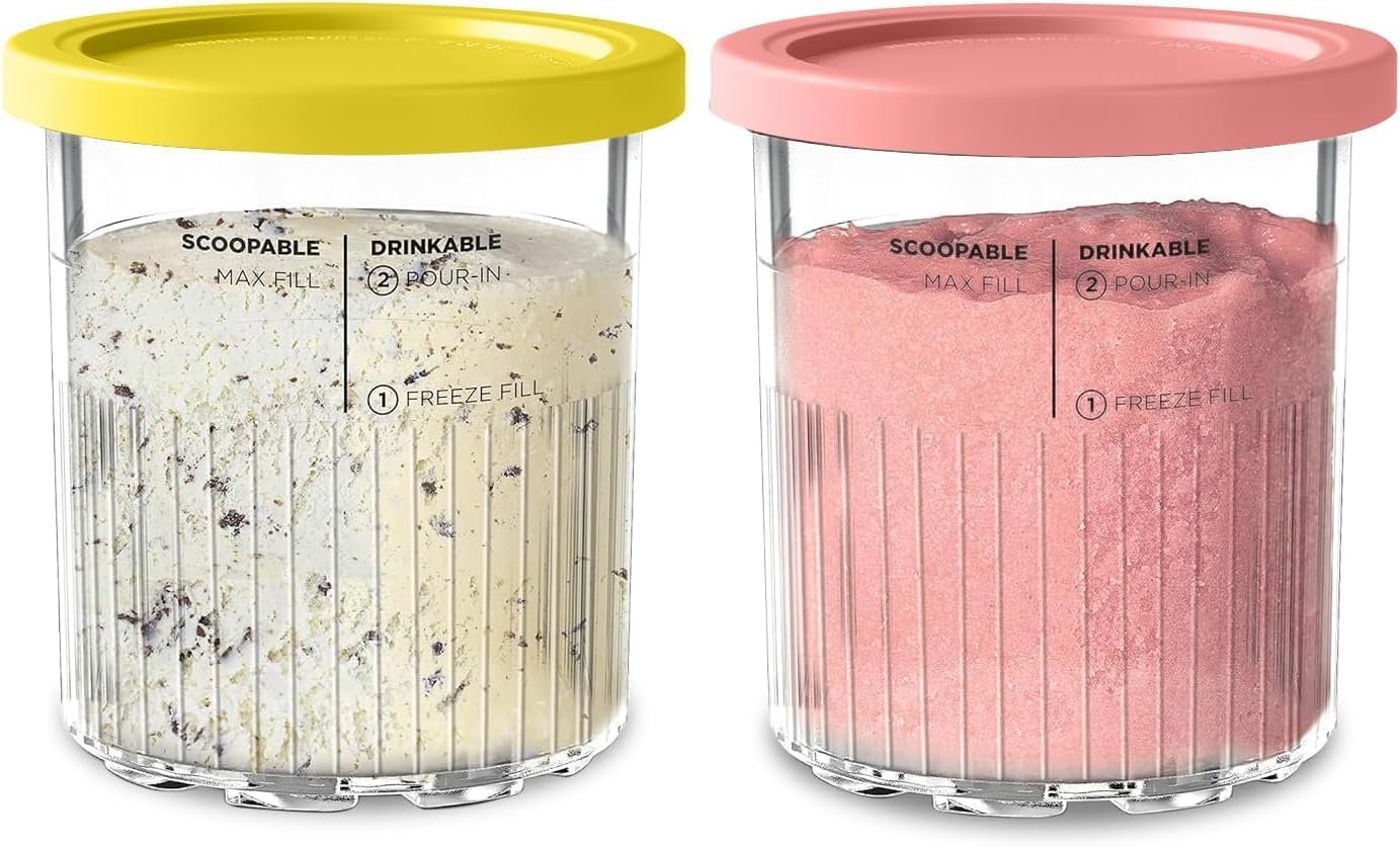🍨[Perfect Compatibility]: Are you looking for more extra CREAMi Deluxe NC501 NC500 series pints? This 24 ounce replacement ice cream containers is perfectly compatible with Ninja CREAMi Deluxe NC501, NC500 series ice cream maker. Now you can churn out multiple batches and flavors simultaneously using these extra pints.