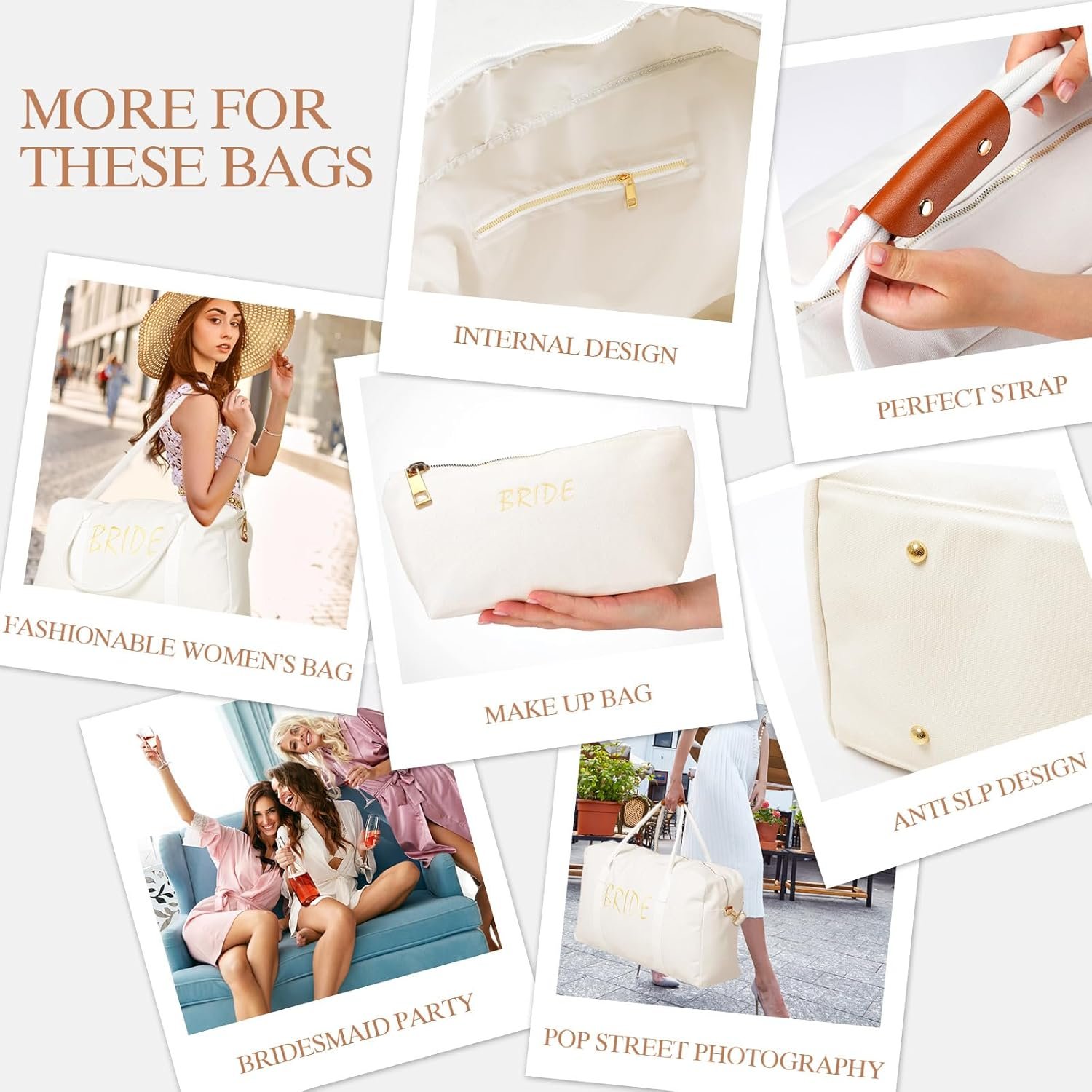 Elegant Embroidery Design: every bride weekender bag and bride makeup bag in the set boasts an intricately embroidered [bride], adding a distinctive and special touch and making it an ideal present for the bride to be or bride at bachelorette parties, bridal showers, engagements, honeymoons, wedding parties and more