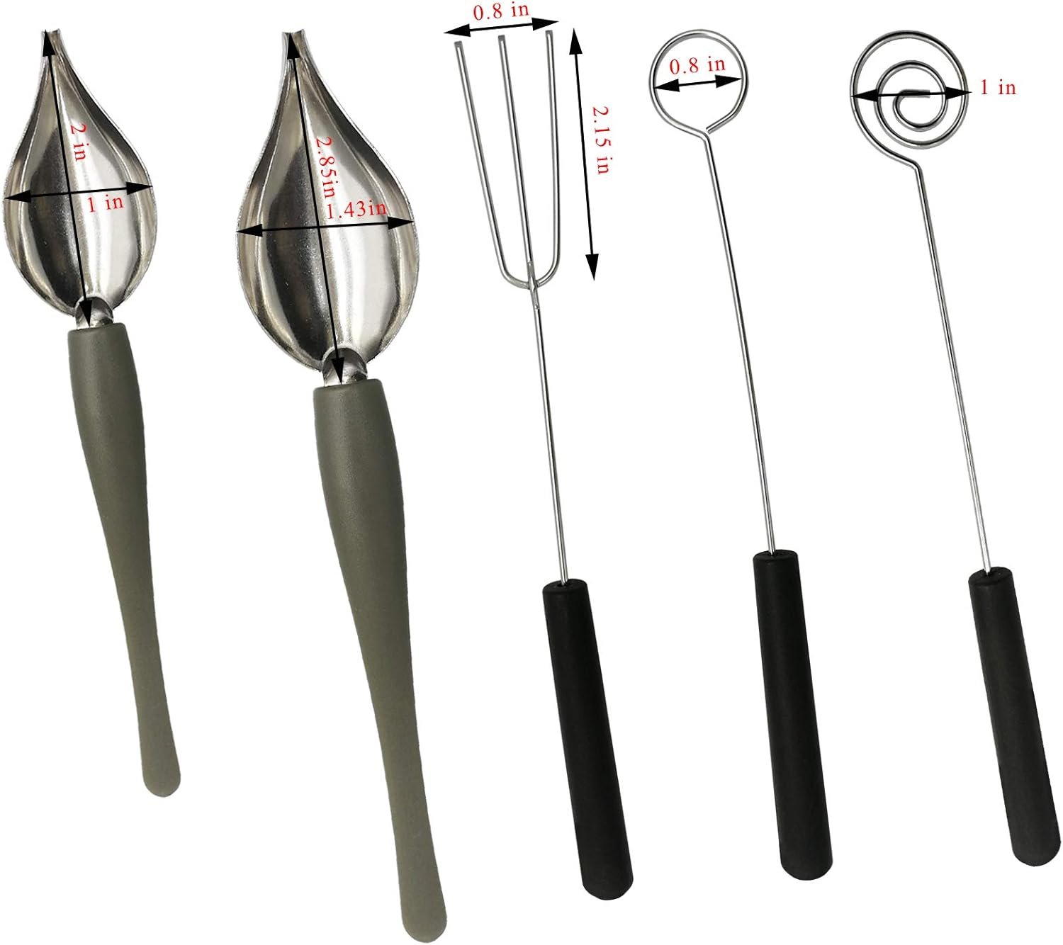 【Package Include】3 pcs chocolate forks in various shapes, including round fork, 3-prong fork and spiral swirl dipper. 2 pcs culinary DIY painting spoons in 2 different sizes.Sufficient quantity can satisfy your different demands, it is a good tool for decorating dishes and very suitable for food decoration work.