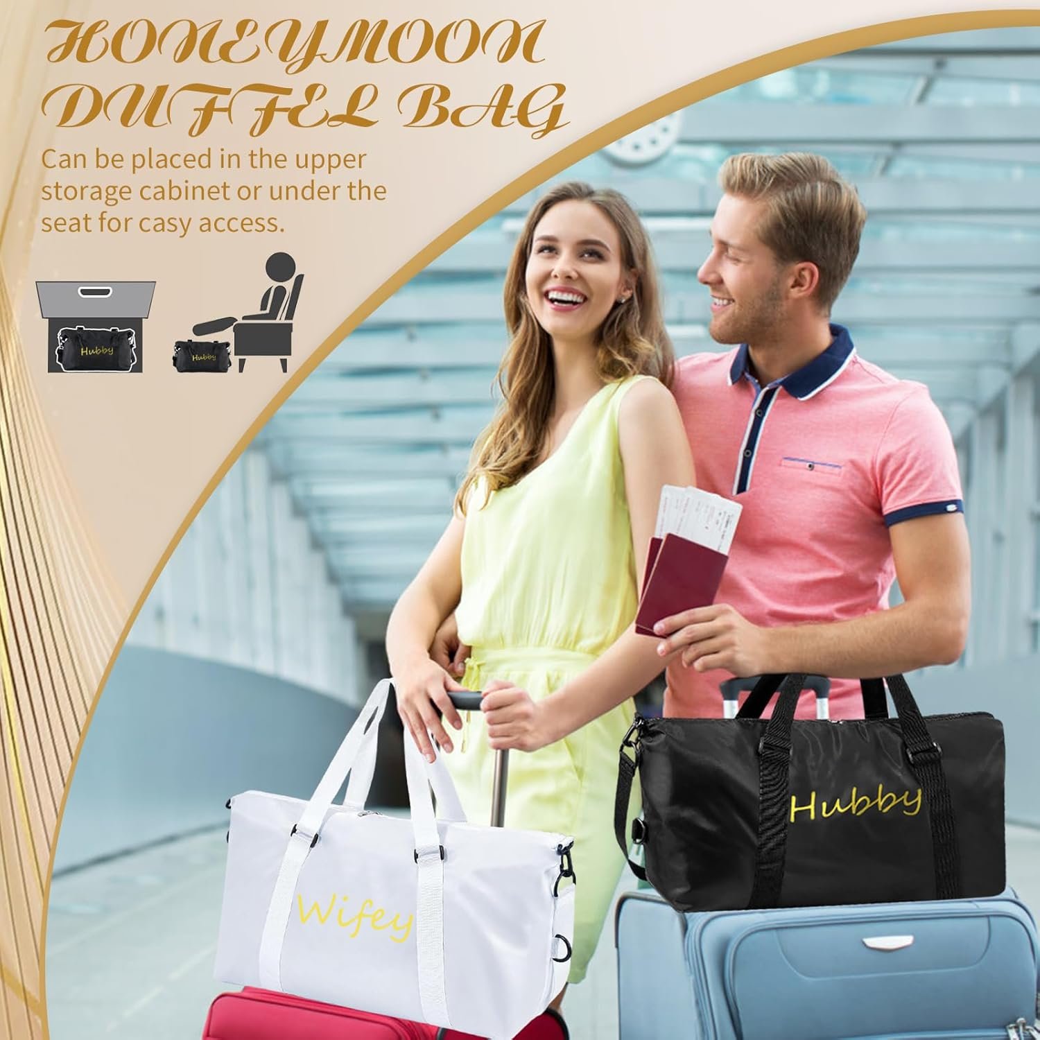 Widely Used: The travel bag can be used for various occasions, not only for weddings, bachelor parties, engagements, honeymoons; but also for gyms, yoga, weekend getaways, etc.; Let you enjoy a happy and convenient trip or honeymoon, it is a reliable companion during your travel
