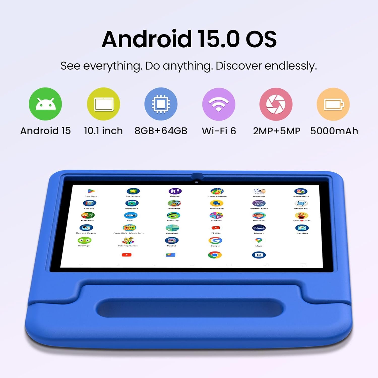 ⭐ 【Advanced Android 15 System & High-Speed Octa-Core CPU】 This 2025 LATEST Android 15 kids tablet is powered by a high-performance Octa-Core processor and the newest Android 15 enhanced system. All features have been upgraded for superior performance. Enjoy incredibly smooth operation with 8GB (4GB+4GB) RAM and 64GB of internal storage. Let your child explore, learn, and play in a secure and high-speed digital environment!