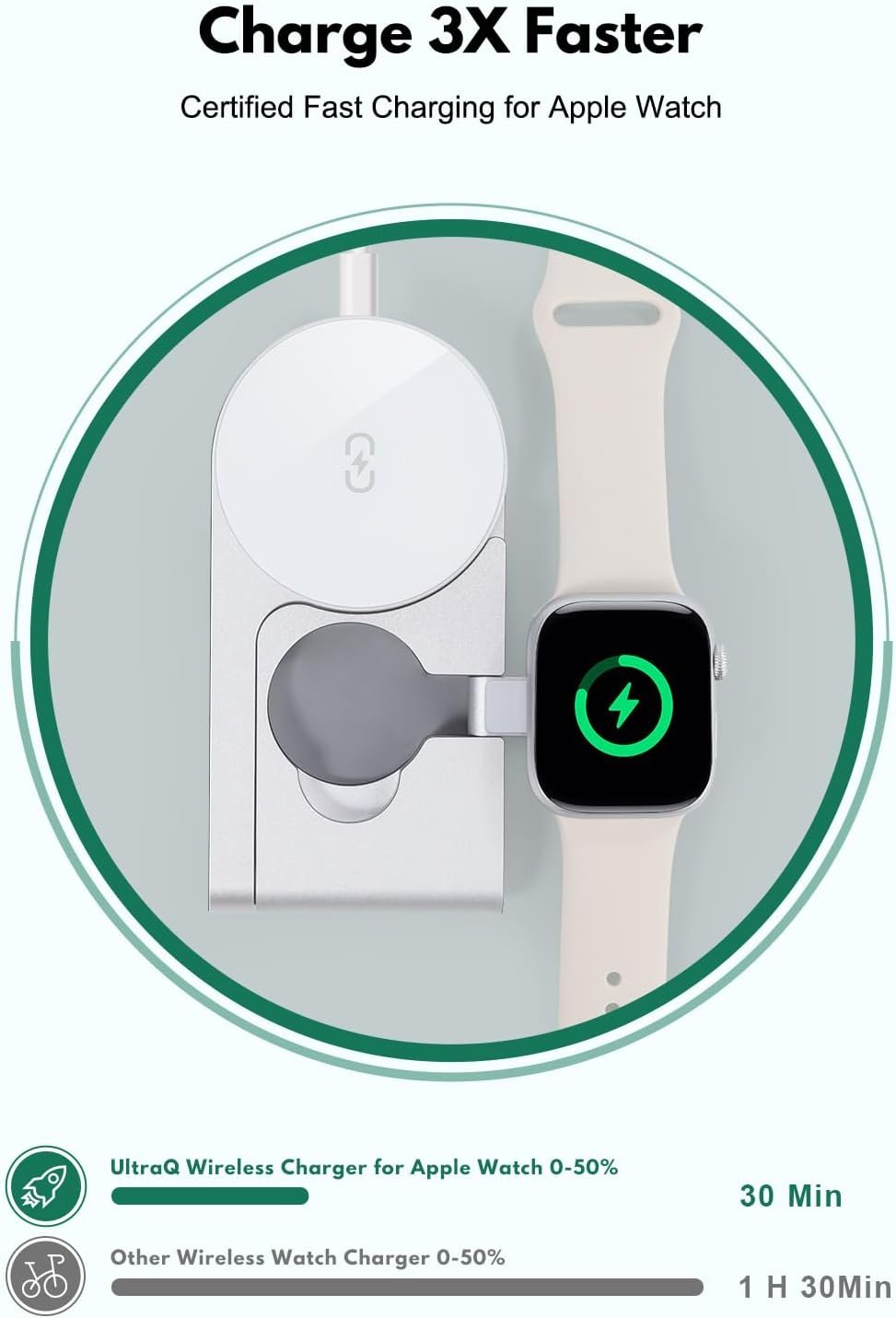 ⌚ Apple Watch Fast Charge Certified – Series 10 Ready Officially certified for Apple Watch fast charging, juice up your Series 10 from 0% to 50% in just 30 minutes. Backed by extensive internal lab testing to ensure peak compatibility and reliability for all watch models.