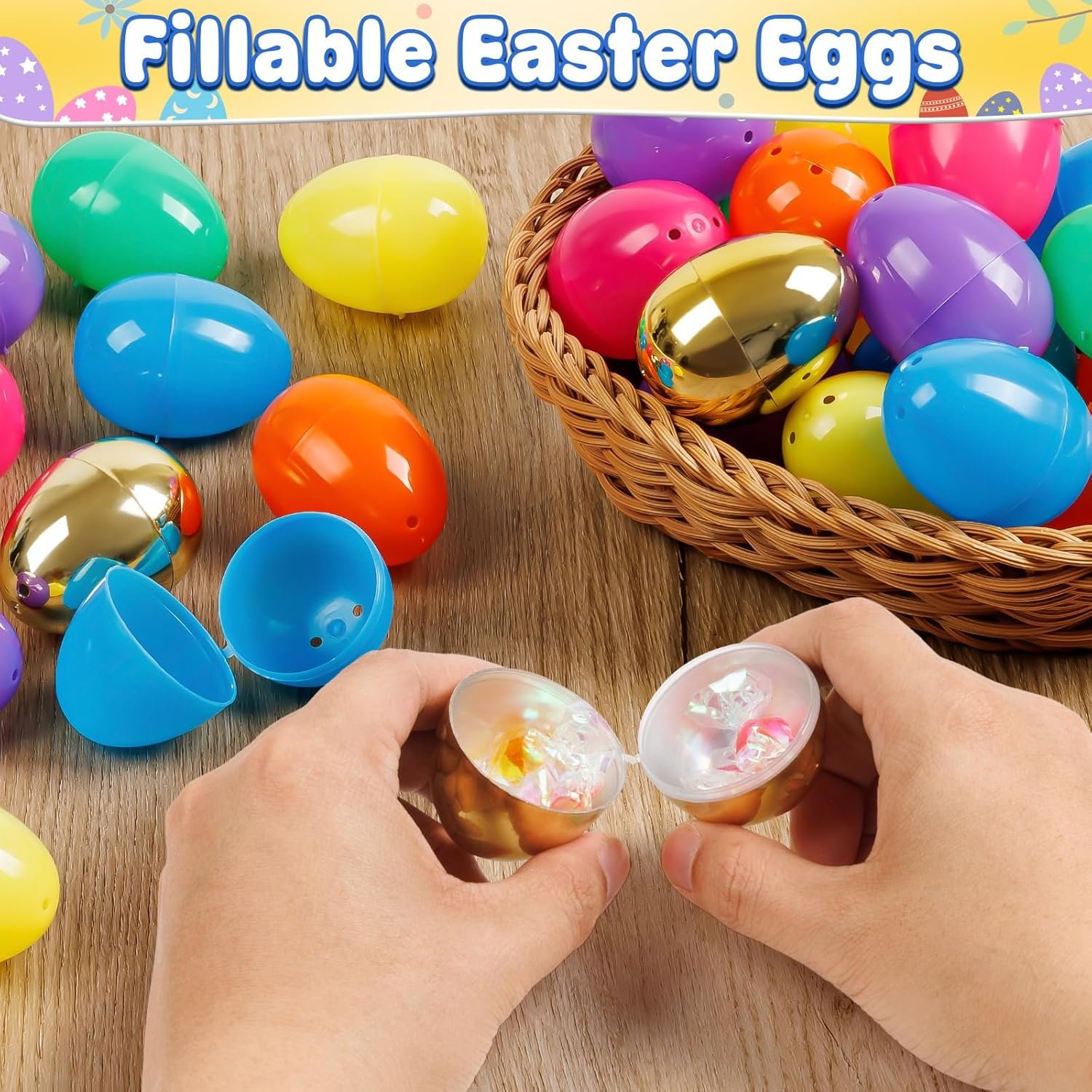 Safe & Durable Eggs: Our eggs are made of non-toxic, BPA-free plastic that meets strict US toy safety standards. Smooth edges and easy‑open hinges are kid-friendly, while fade-resistant bright and gold colors add a festive touch to all your decorations.