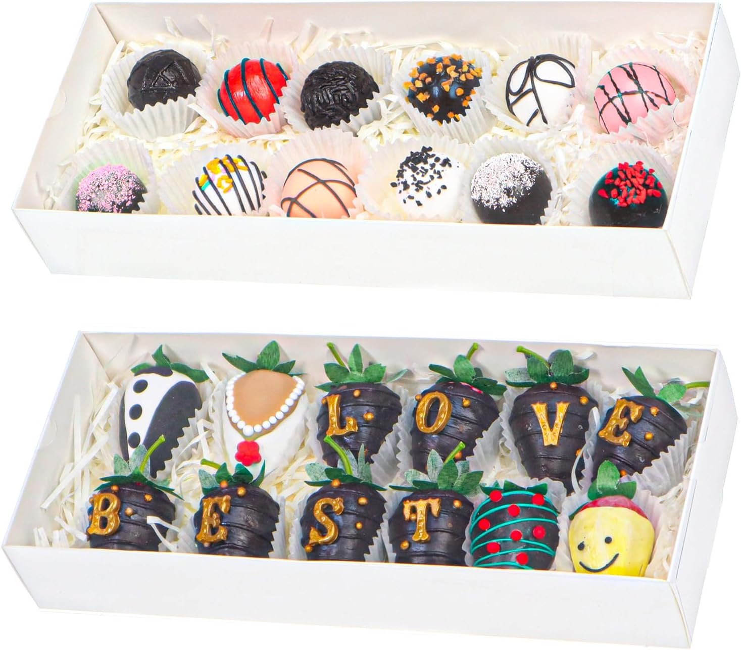【Size】Length: 12nches (30.5CM) x Width: 4.8inches(12.2CM) x Height:2inches(5cm) box fit for 12 chocolate covered strawberries