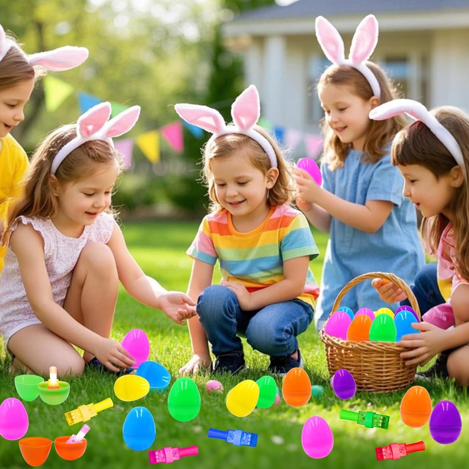 🐣【24-Pack Super Value Set】These adorable Ocean-themed Easter gifts are a huge hit with kids! Each set includes 24 colorful plastic eggs and 24 bunny-shaped LED finger lights—perfect for preschool and elementary school children. The eggs measure 2.2×1.6 inches, just right for filling Easter baskets or handing out as party favors. Let the egg-citement begin!