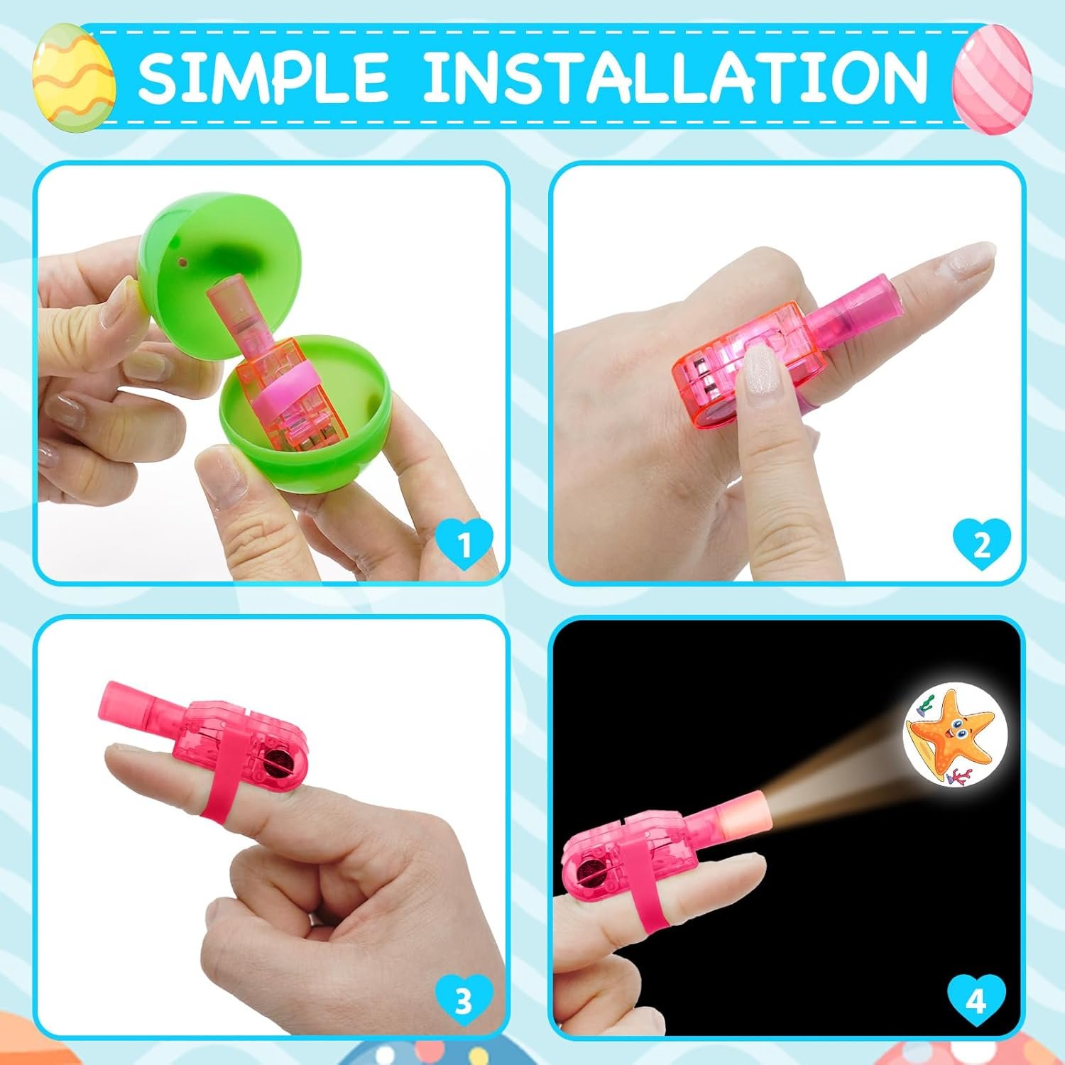 * Each set includes 24 finger projector lights featuring 6 unique Ocean-themed designs and 24 plastic Easter eggs in 6 vibrant colors. Kids simply switch it on for instant excitement!