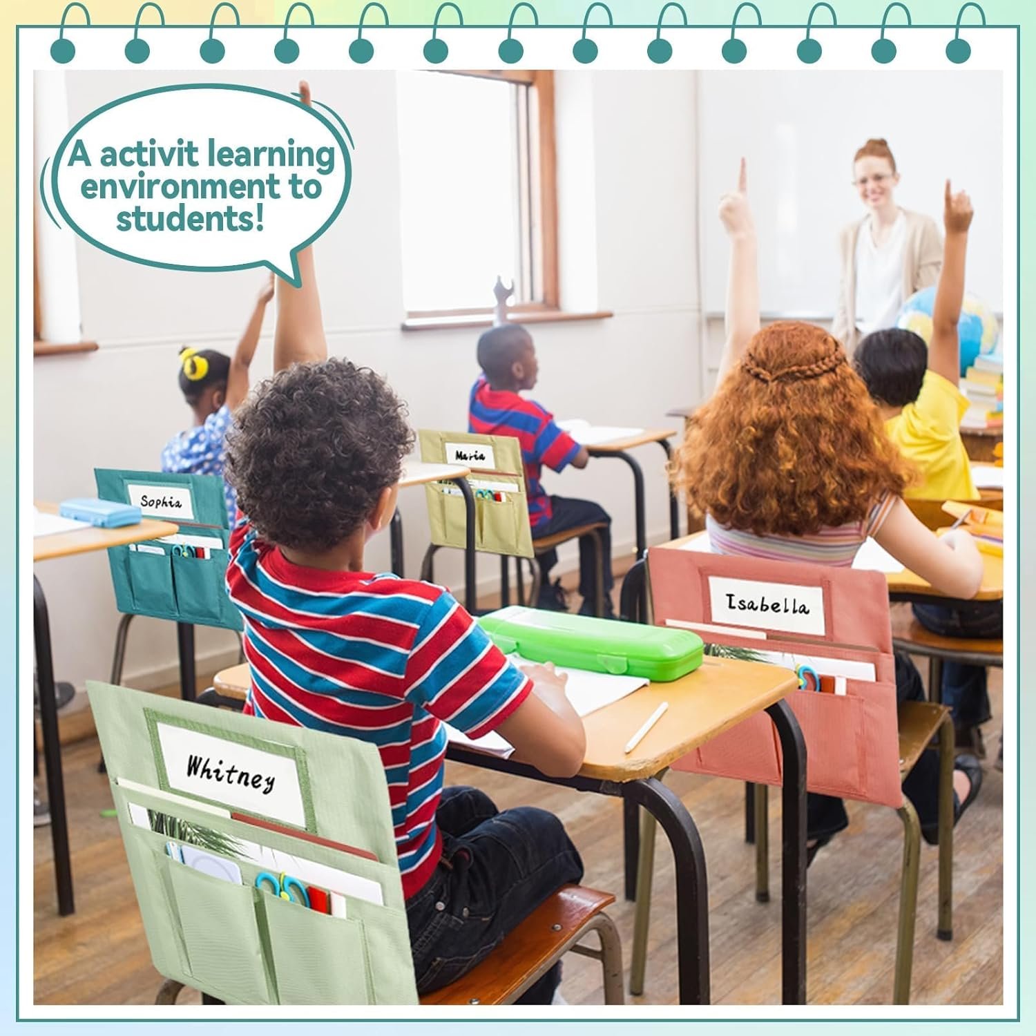 Premium Material & Easy to Clean: Made from high-quality, tear-resistant materials, these chair pockets are built to withstand daily use in busy classroom environments. Designed for long-lasting performance, they can endure the wear and tear of a classroom setting without losing their shape or function. Cleaning is a breeze, simply toss them in the washing machine, and they’ll come out looking like new, ready for continued use.