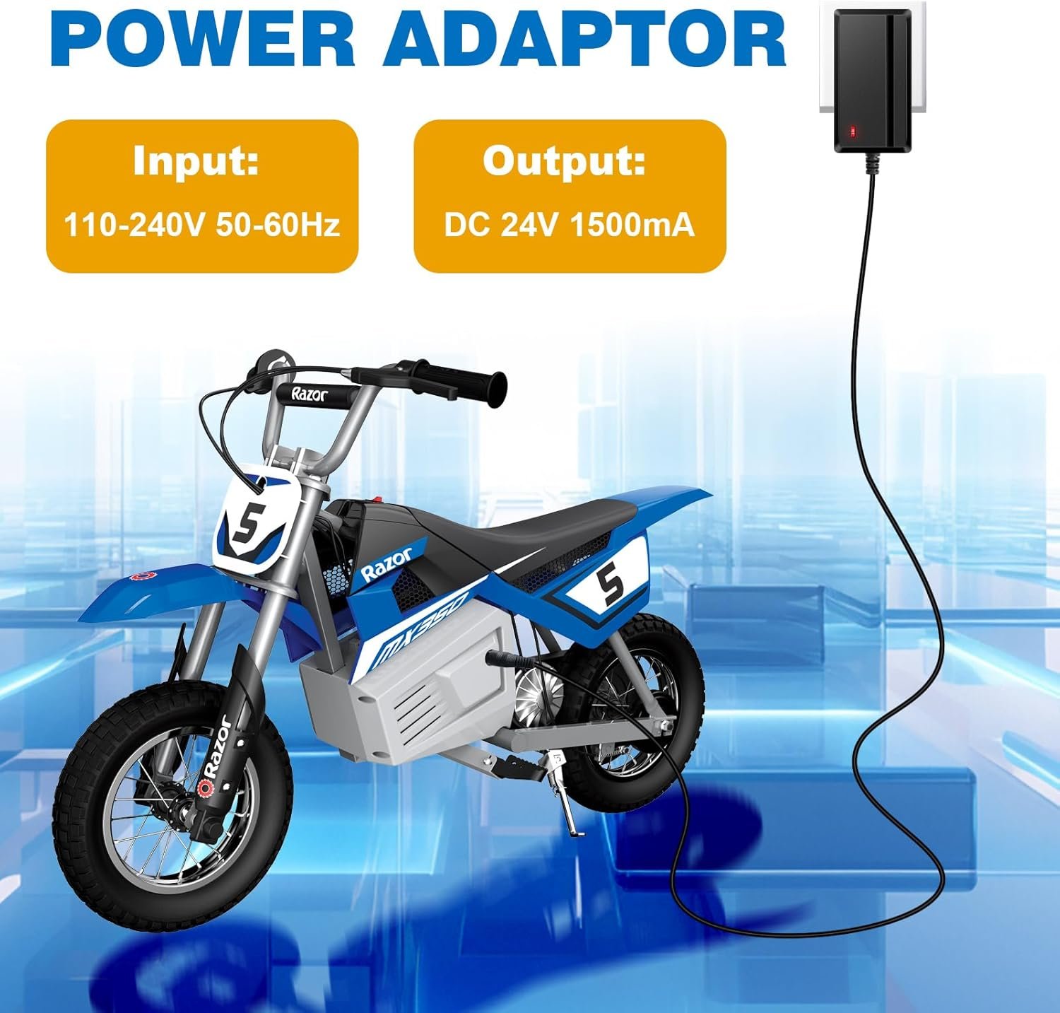 Compatibility:24V Razor Scooter Charger for Razor E100 E100S E125 E150 E175 E200 E200S E225 E225S E275 E300 E300S E325 E325S E500 E500S PR200 PR200S ZR350 MX400 Dirt Rocket MX350 SX350 Dirt Rocket RSF350 MX400 Dirt Bike Pocket Mod Sports Mod Dirt Quad Dune Buggy Motorcycles Ground Force Go Kart Sport Bike Mini Chopper Trikke E2 Electric Dirt Bike