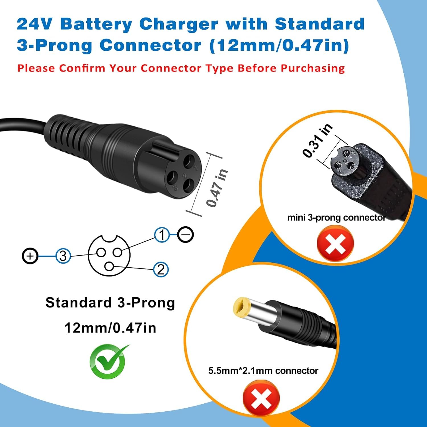24v 3 prong female charger24v 3 prong female charger