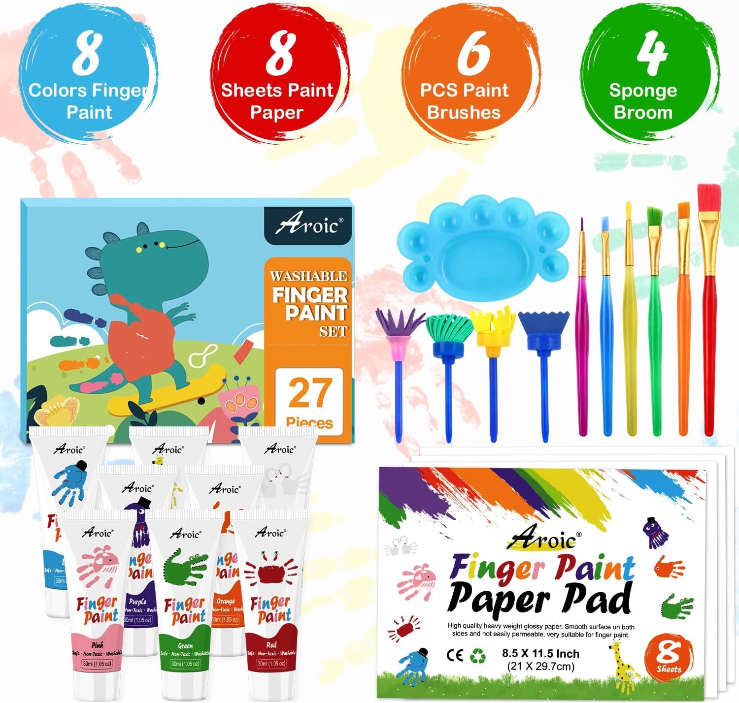 【Rich Finger Paint Set】: The washable finger paint set comes with 8 Colors paint(1.05 oz),8 Sheets Finger Paint Paper,6 Brushes, 4 Sponges, 1 palette and a box.This kids washable paint set has everything you need, release children’s creativity without worrying about anything