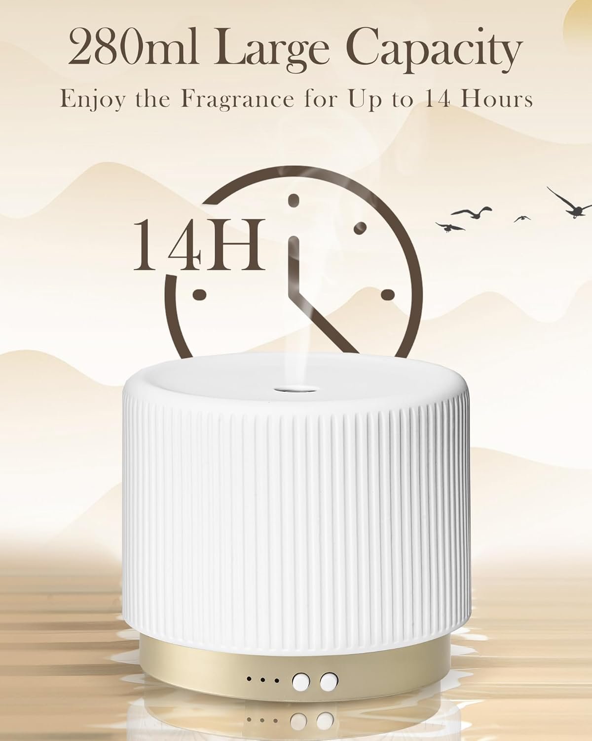 【Perfect for Large Rooms】 With a generous 280ml capacity, this diffuser is ideal for large spaces. The automatic shut-off function ensures worry-free nighttime use, preventing overheating and keeping your family safe while you sleep.