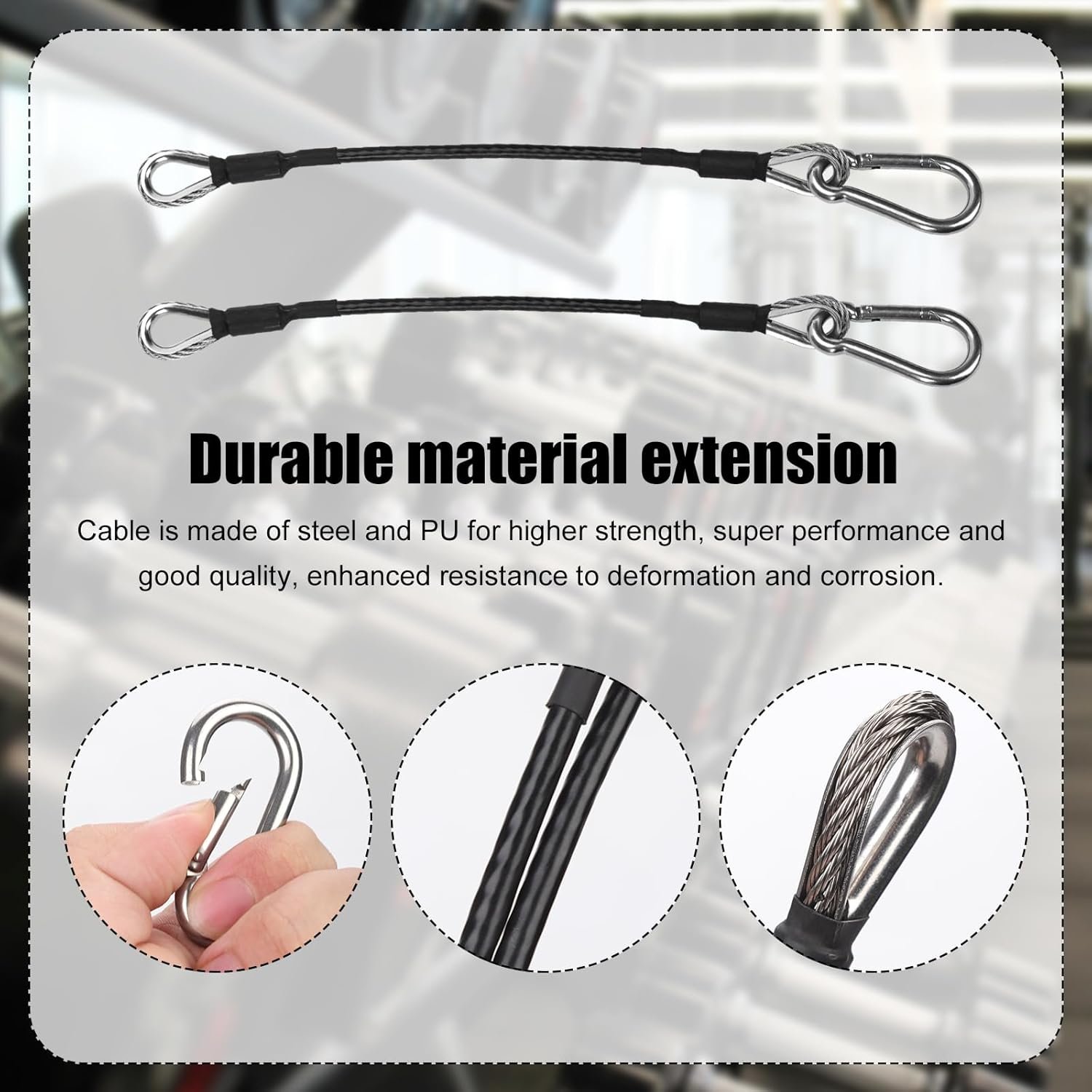 Package Includes: You will receive 2 pieces of gym extension cables with carabiner, compatible with Bowflex. Please note that our product is not sponsored or endorsed by, or affiliated with the brands it fits, including Bowflex.