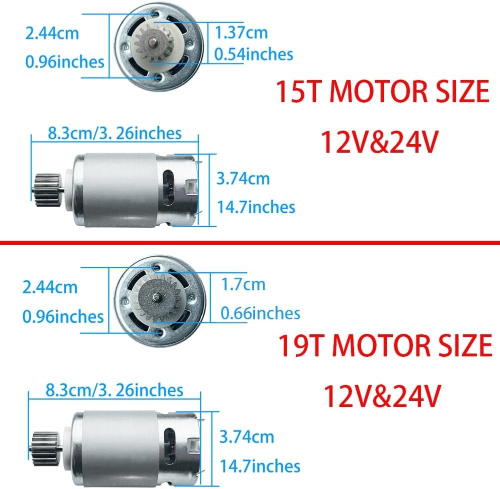2. After determining the teeth of the motor, please confirm the battery voltage. If you have a 12V battery, please choose a 12V motor. If you have a battery of 18V or above, please choose a 24V motor