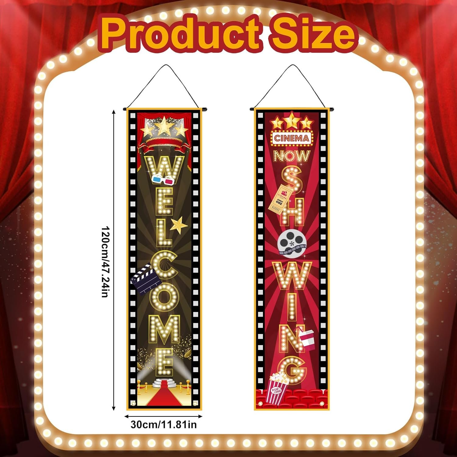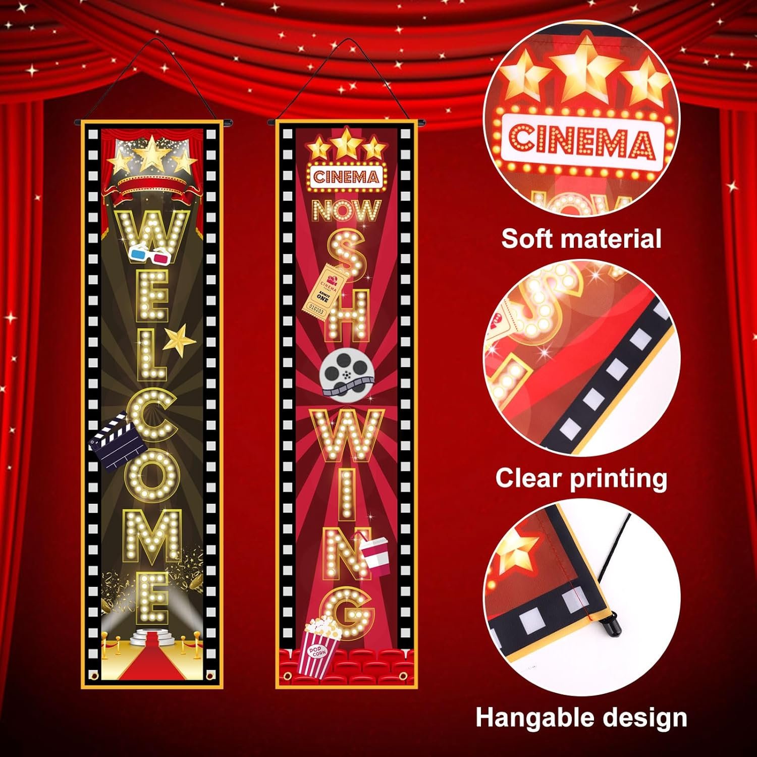 Wide Applications: Perfect for movie nights, birthday parties, carnivals, and other gatherings. Use it as a welcome sign or photo backdrop to easily create a lively movie atmosphere.