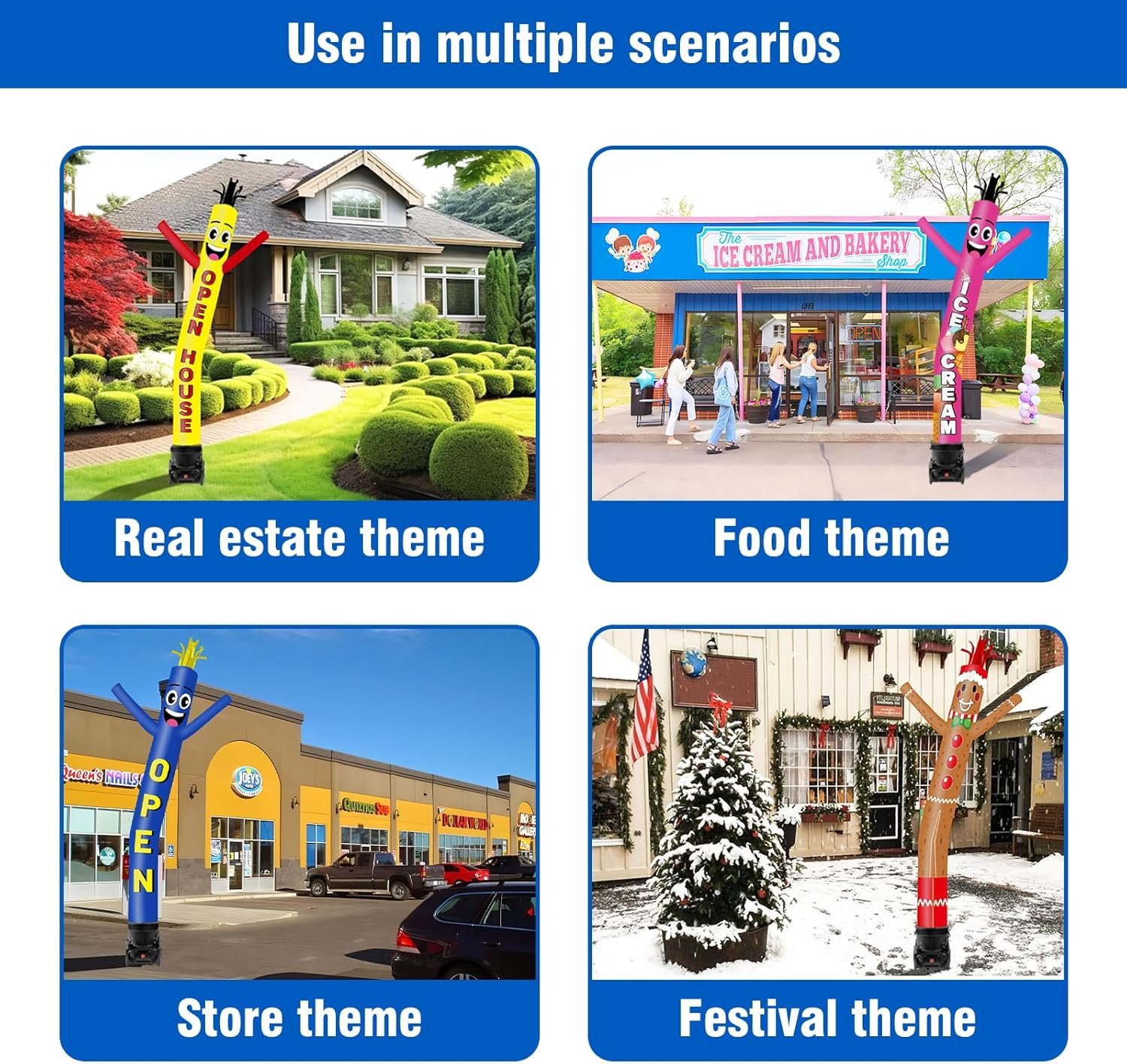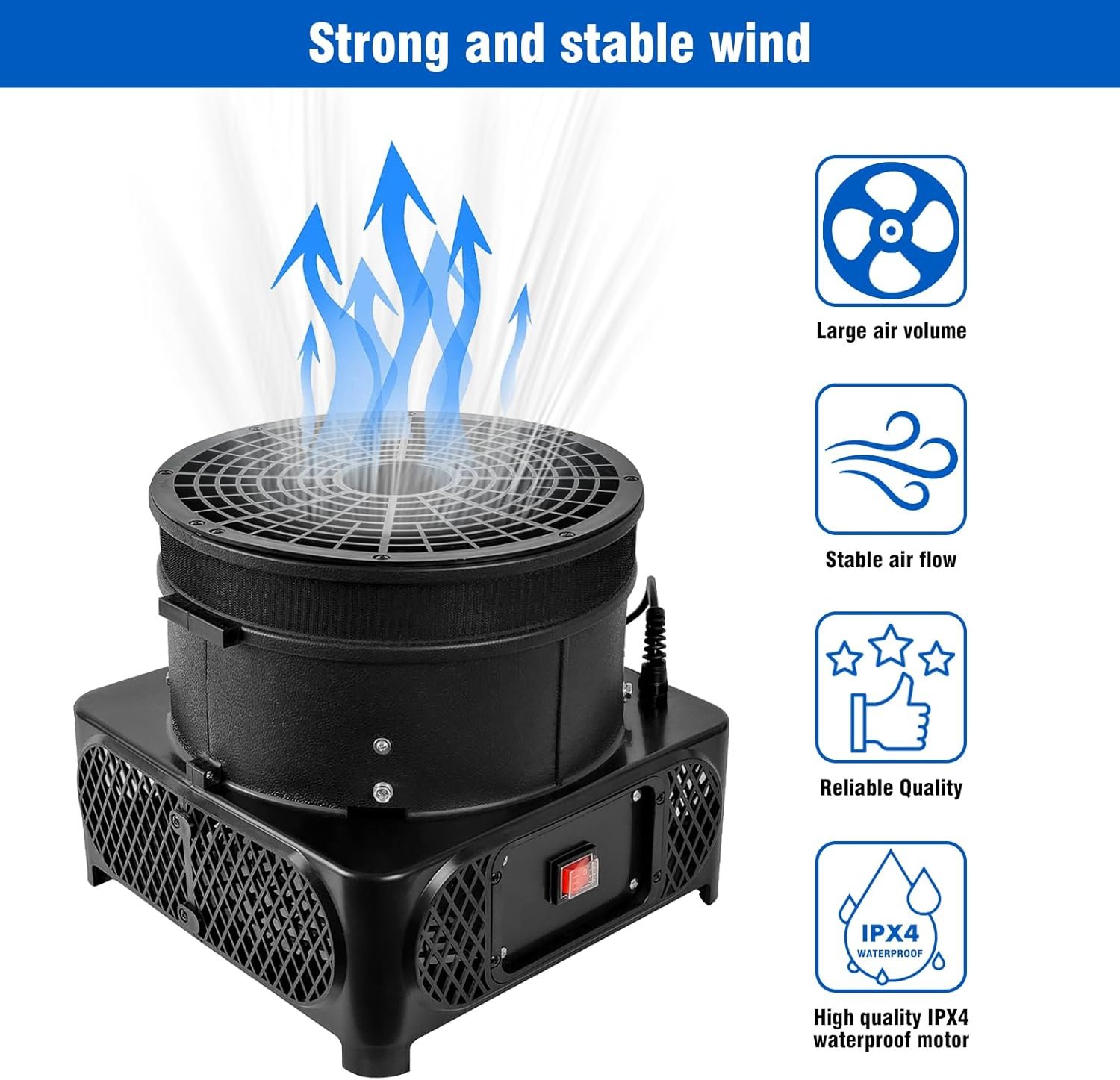 Strong Wind: With 3/4 HP power, it generates strong wind, allowing your inflatable dancer to fly higher and dance more gracefully