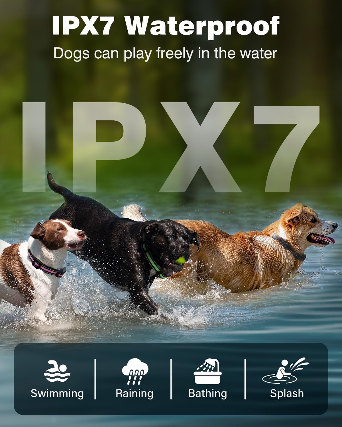 Enhanced nighttime visibility: Reflective nylon collars (Green, Pink, Black) and a built-in flashlight in the remote provide extra safety during evening walks. Enjoy worry-free nighttime walks with your dog, knowing they won’t get lost