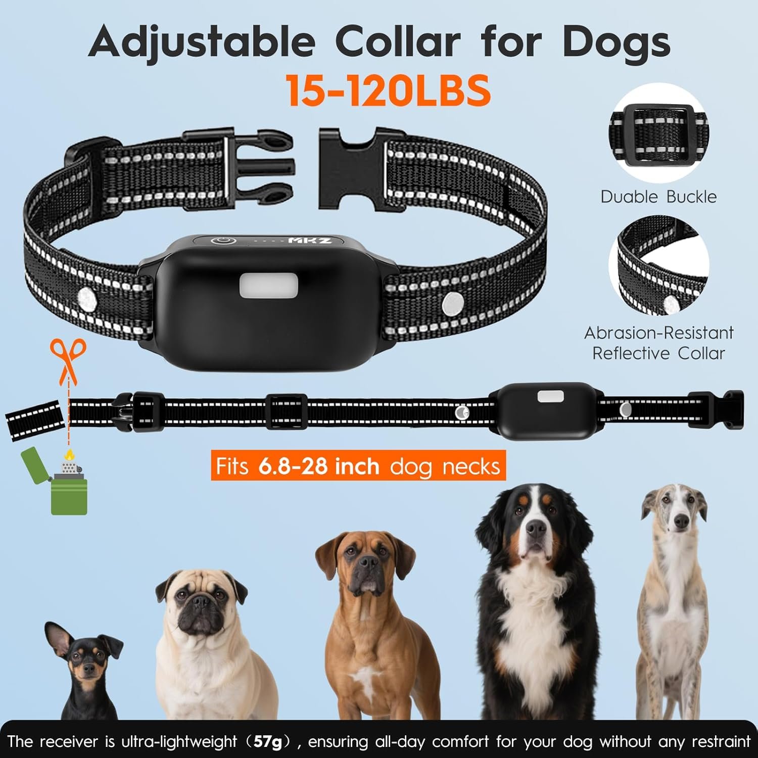 Fits for 15-120lbs All Sizes of Dogs: MKZ training collar for dogs sizes dog with neck sizes from 6.8 – 28 inches and weights from 15 – 120 lbs. Dog training collars are suitable for large dogs, medium dogs, and small dogs.