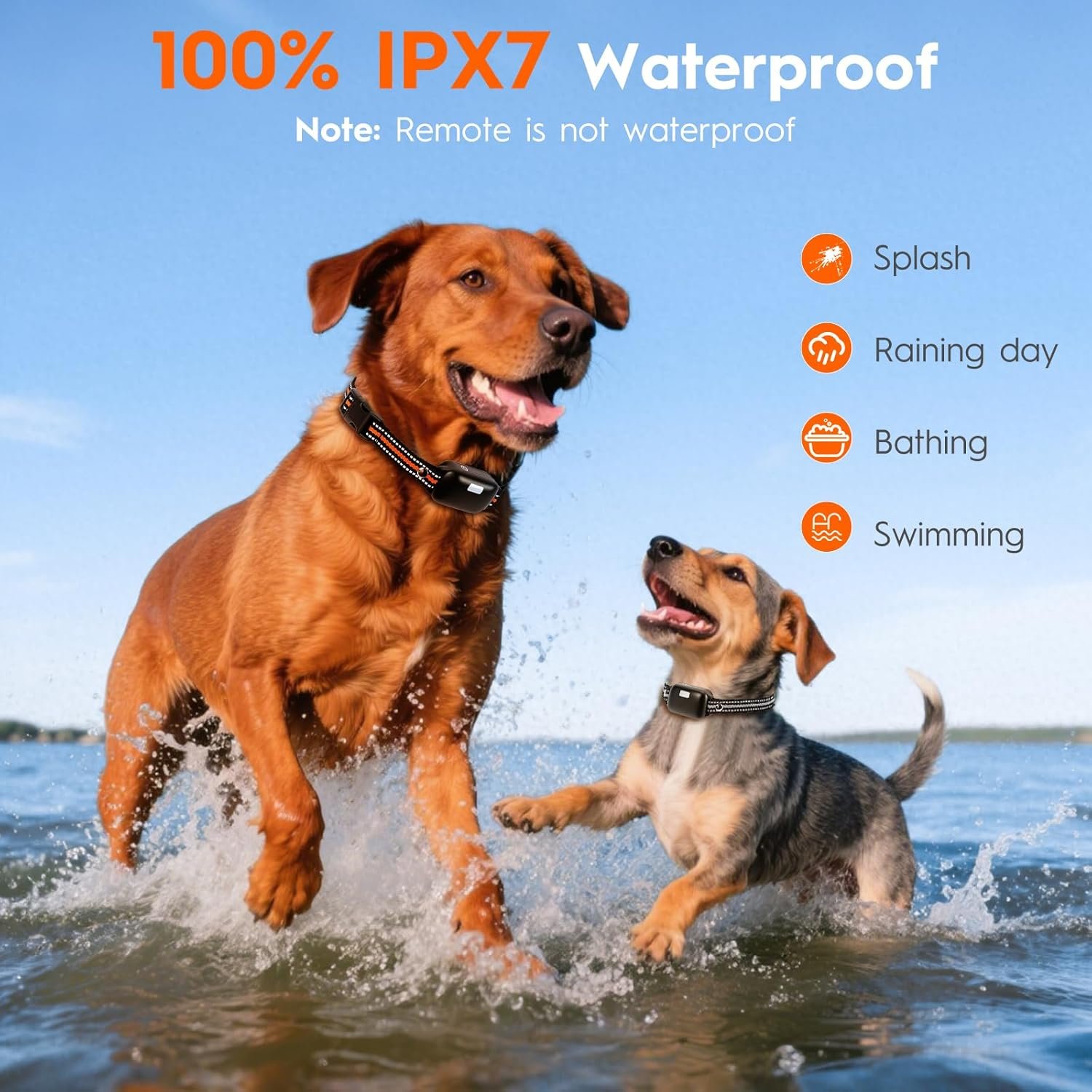 IPX7 Waterproof and Security Lock: The dog shock collar has an IPX7 waterproof and long-life battery. The waterproof receiver is ideal for all-weather training.(Note: The remote is not waterproof) The remote features a safety lock to prevent accidental shocks.