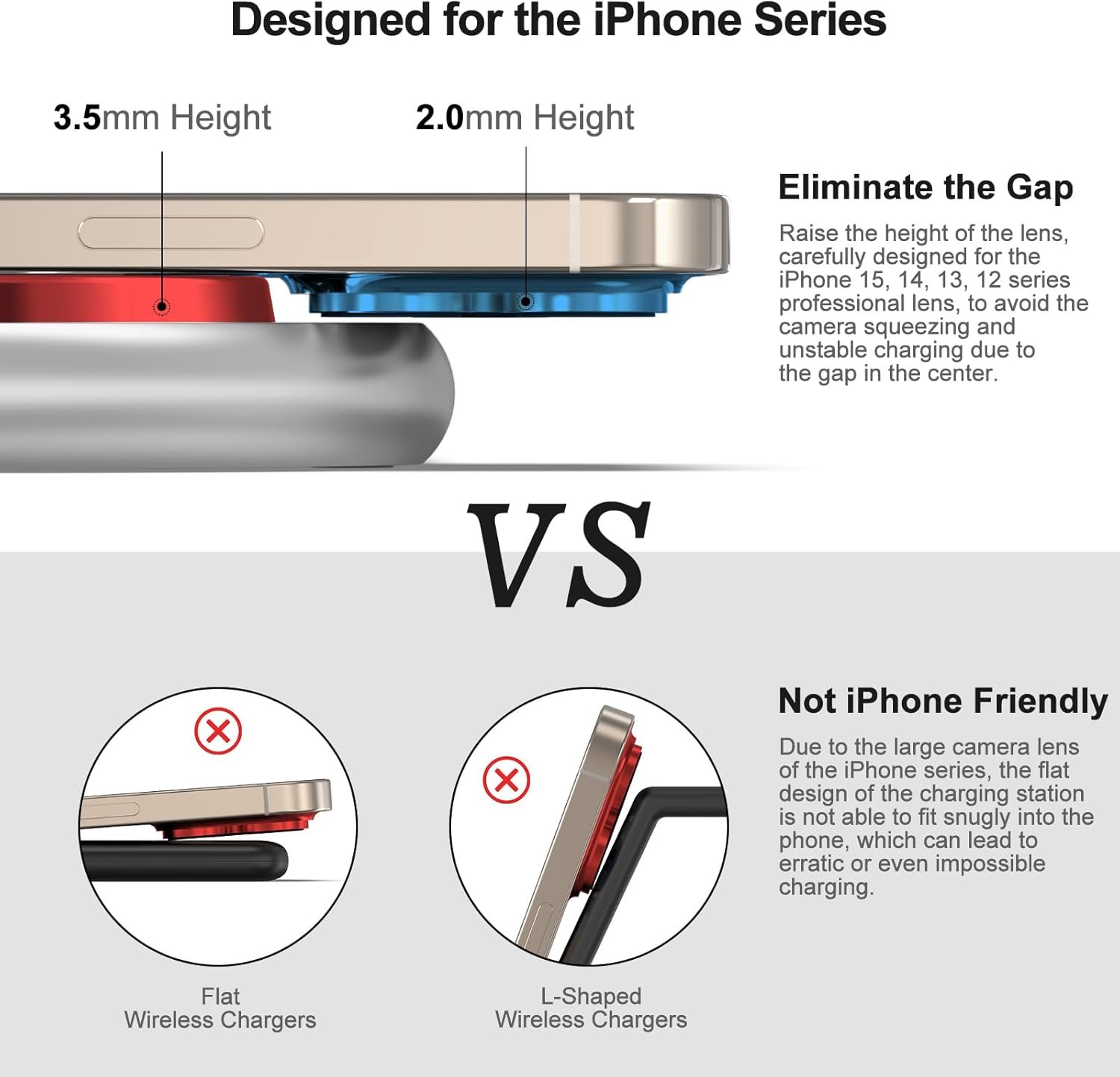 ZINC ALLOY WIRELESS CHARGING PAD : Made of high quality zinc alloy material with excellent heat dissipation, the heat dissipation performance is more than 50% higher than that of plastic material, which allows us to charge faster and better protect the health of the battery.