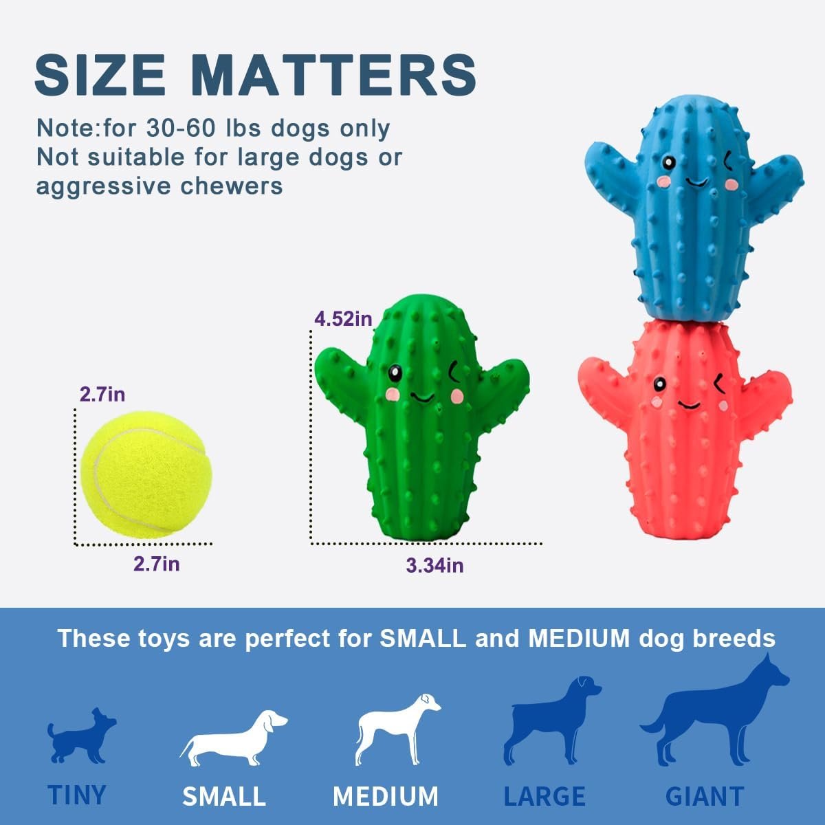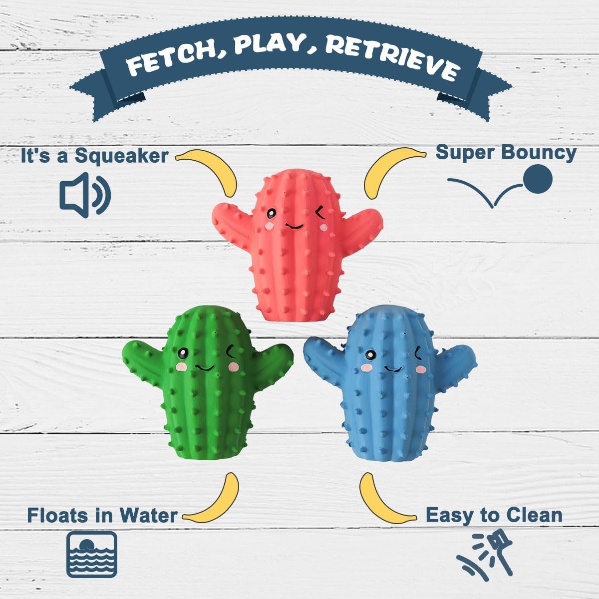 Cactus Shaped Squeaky Dog Toys: Since the toys is irregular, they bounce differently than a round ball. It has an unpredictable roll and bounce, and even small dogs can grab these toys in their mouths easily or catch in mid-air. The dog toy multi-pack comes with a variety of bright colors that are highly visible and ideal for both indoor and outdoor fun
