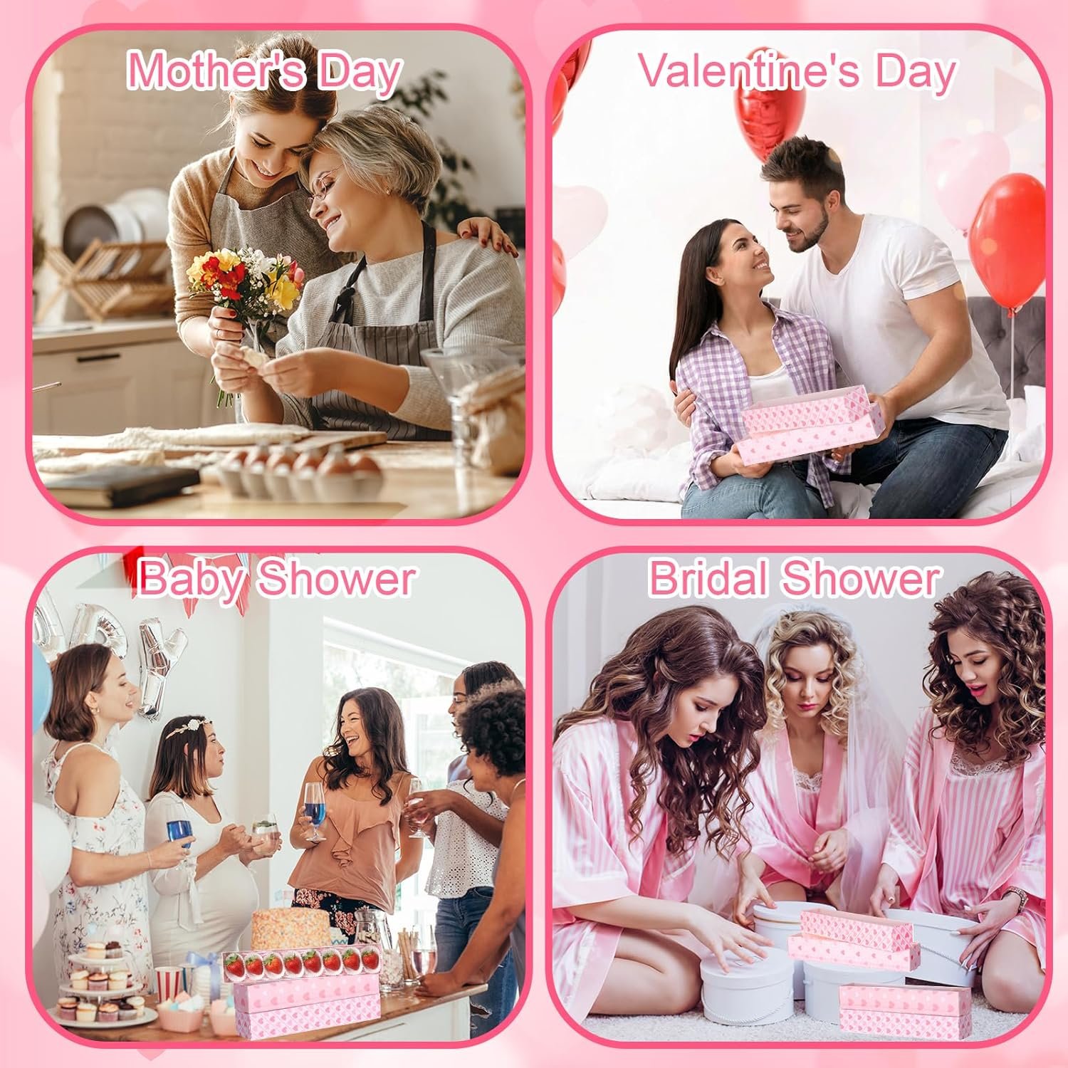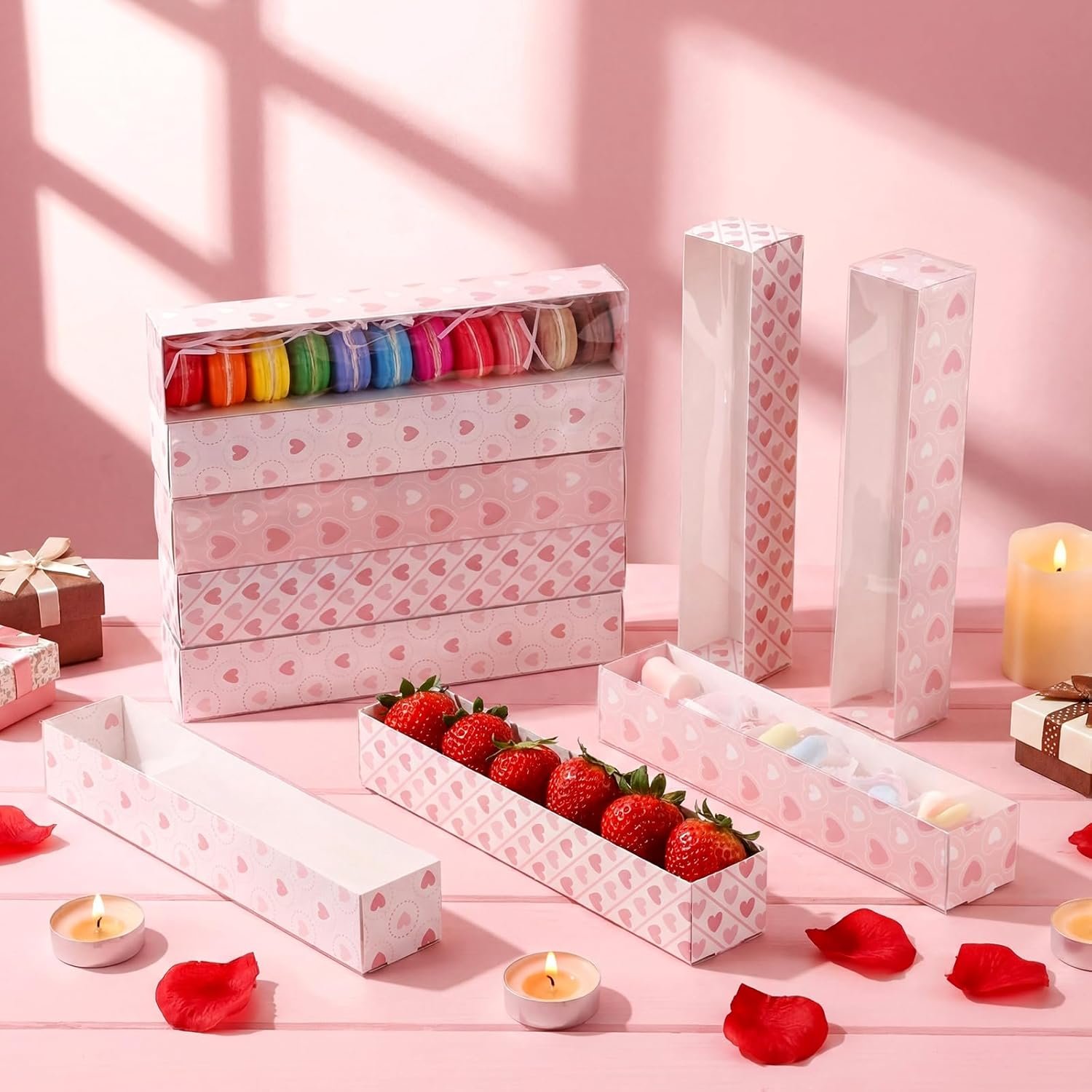 Our bakery box is ideal for chocolate strawberries, cookies, pastries, muffins, donuts, macarons and so on.