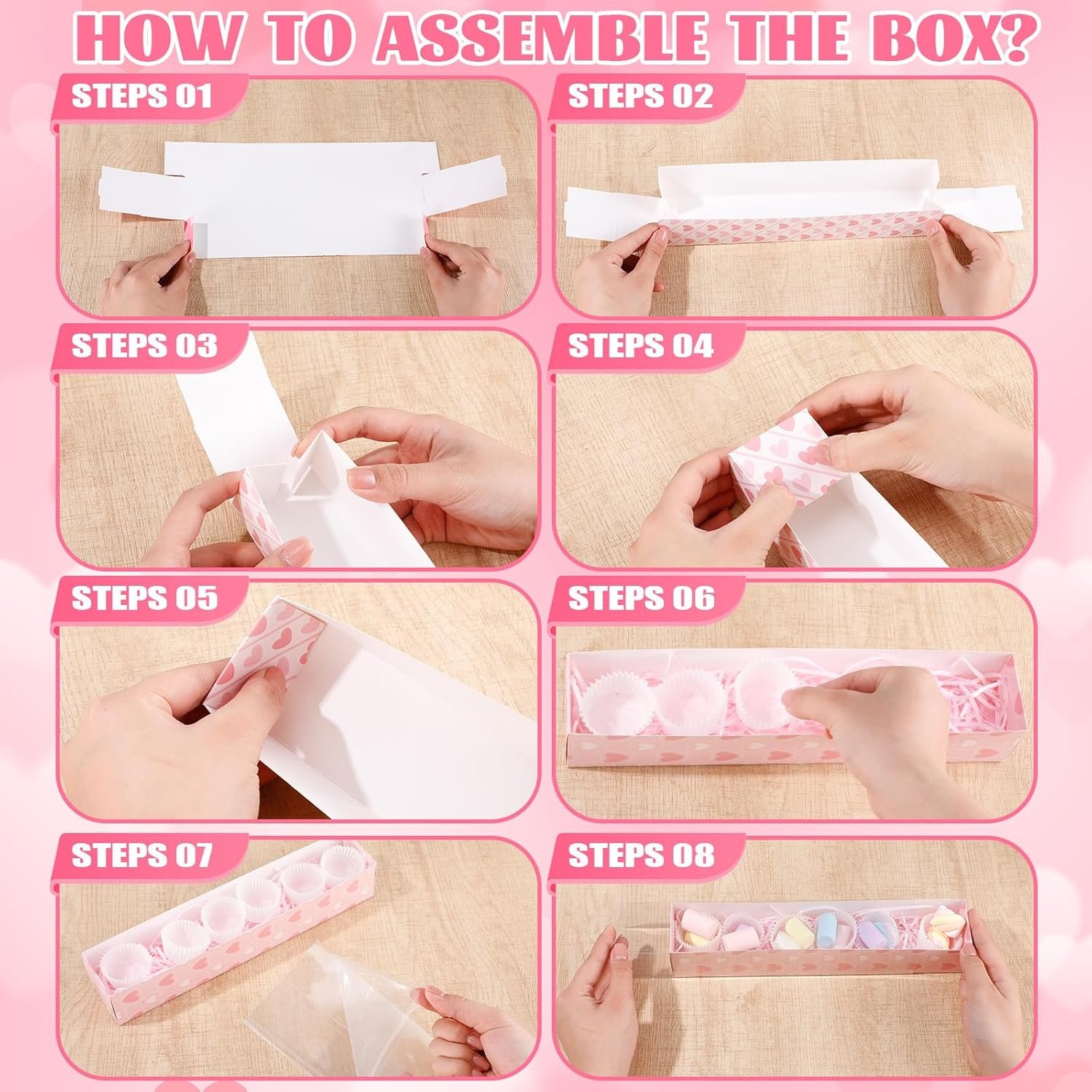 Sufficient Quantity: you will receive 30 pieces of Valentine’s Day cookies boxes, the size is about 12 x 2.2 x 2 inches, and you will also receive 4 packs of raffia, each bag is 20g, and 250 paper trays, the size is about 1.38 x 0.98 inches/ 3.5 x 2.5 cm; The accessories are complete, and the quantity is sufficient, which is very convenient for you to make exquisite strawberry boxes